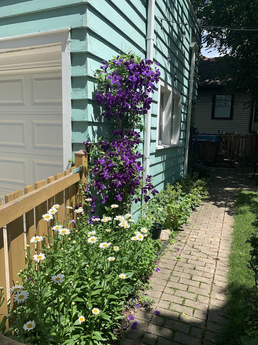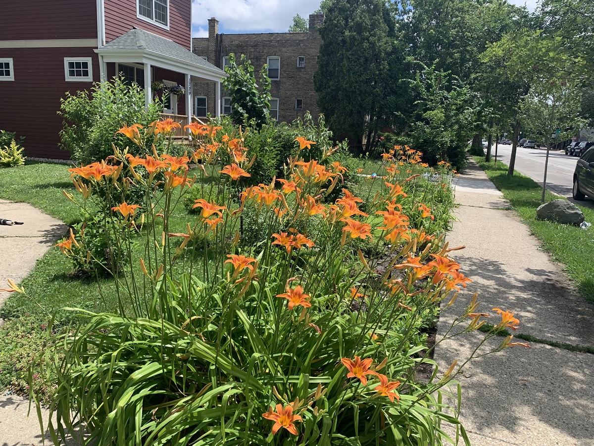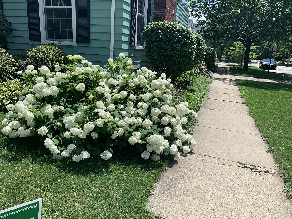 Starting to walk south, accross McCormick and the canal, along Dodge Avenue past ETHS to Mulford St. -- white bush