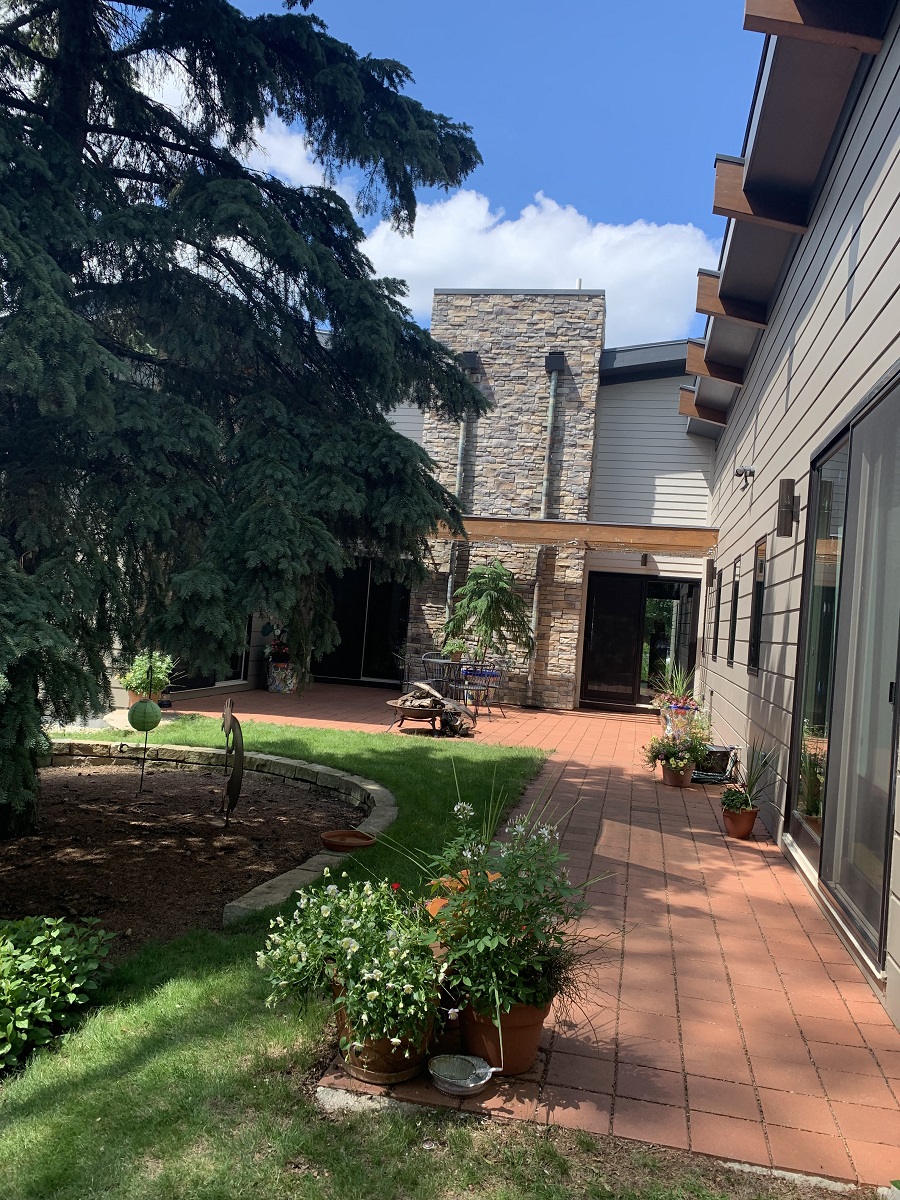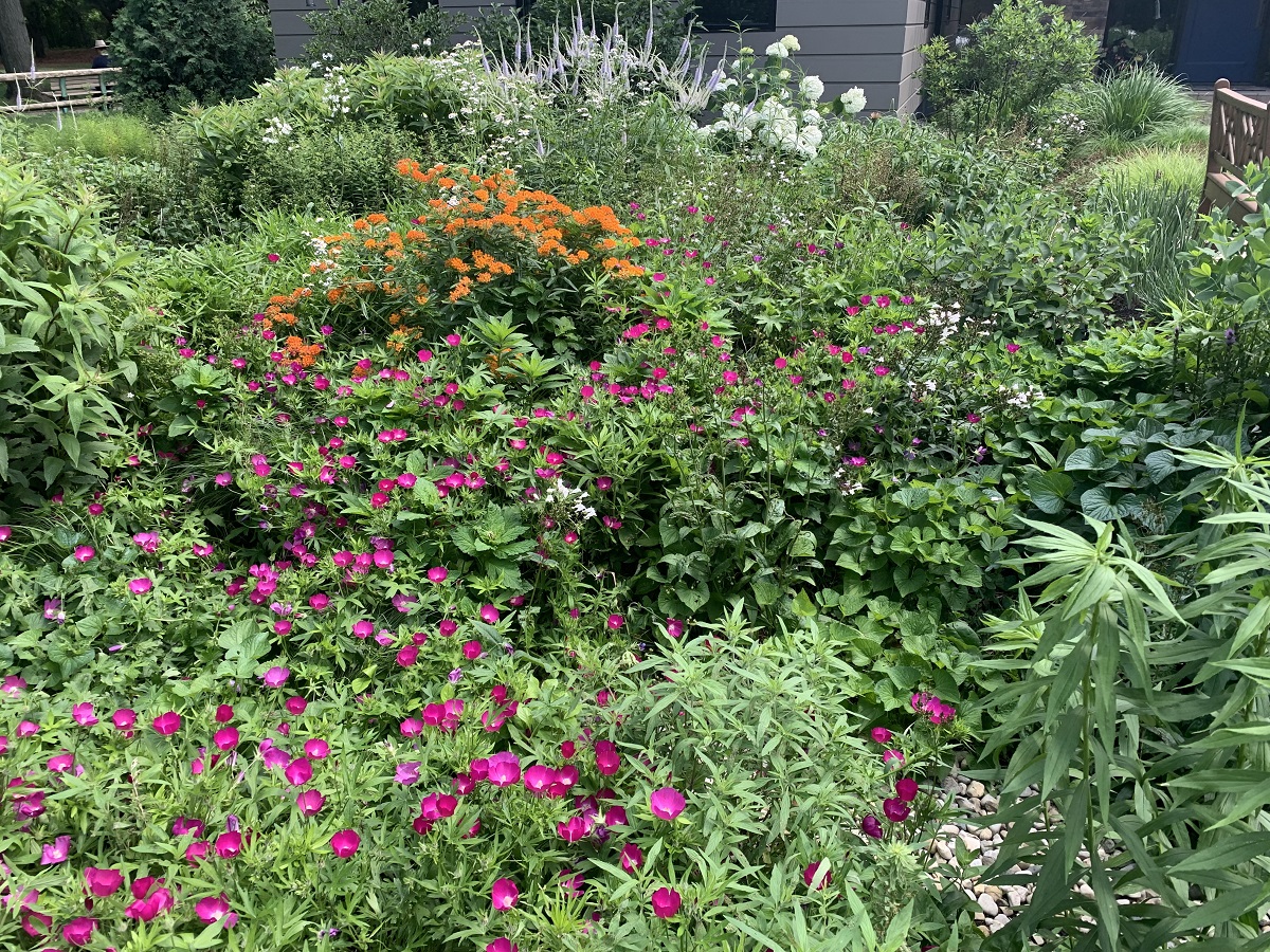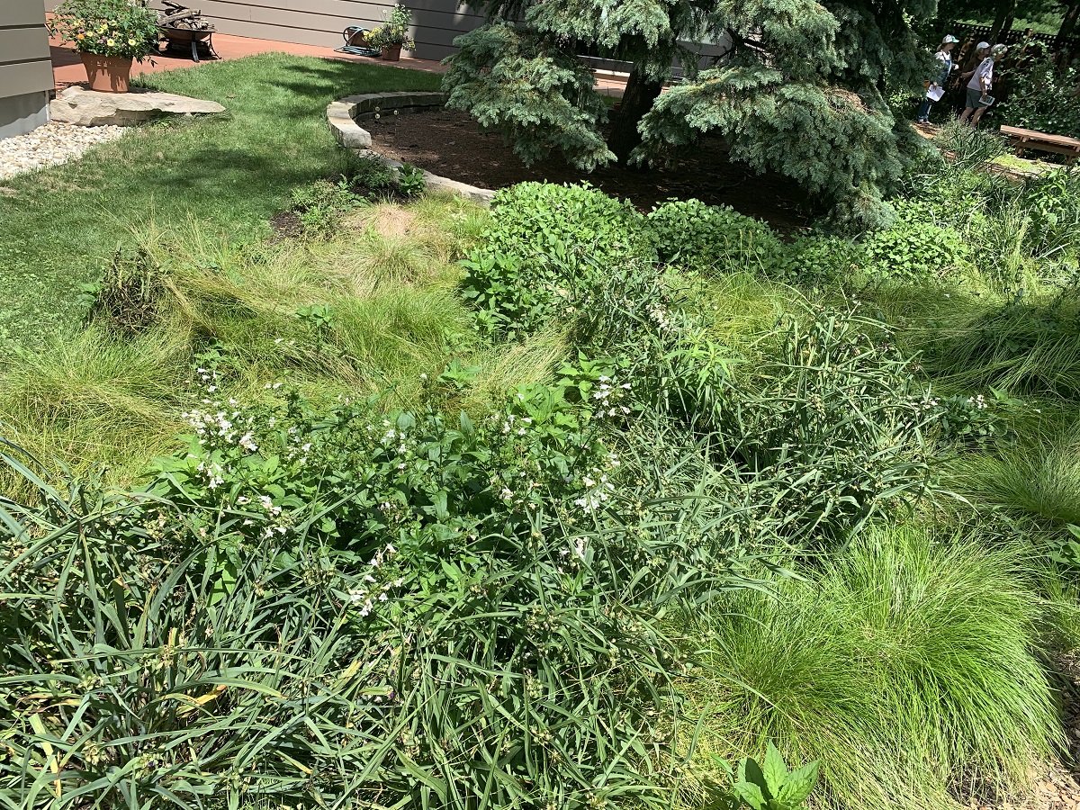 Another rain garden in front of this LEED certified house with solar panels on the roof