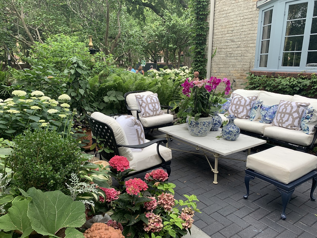 Purple flowers at Optima courtyard