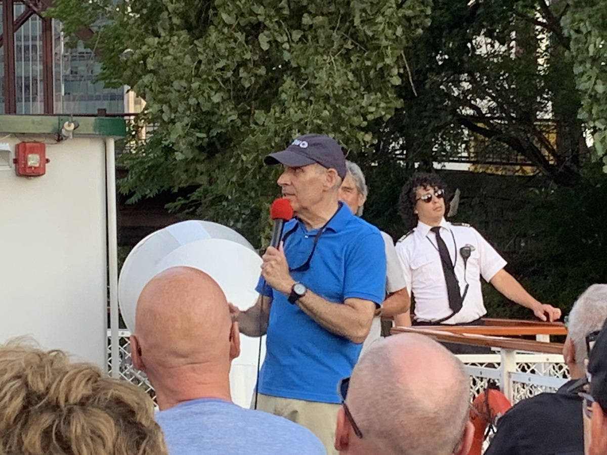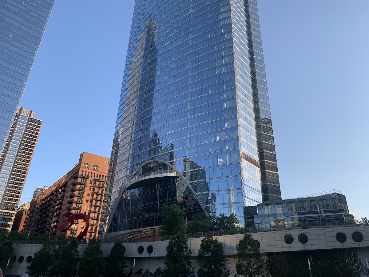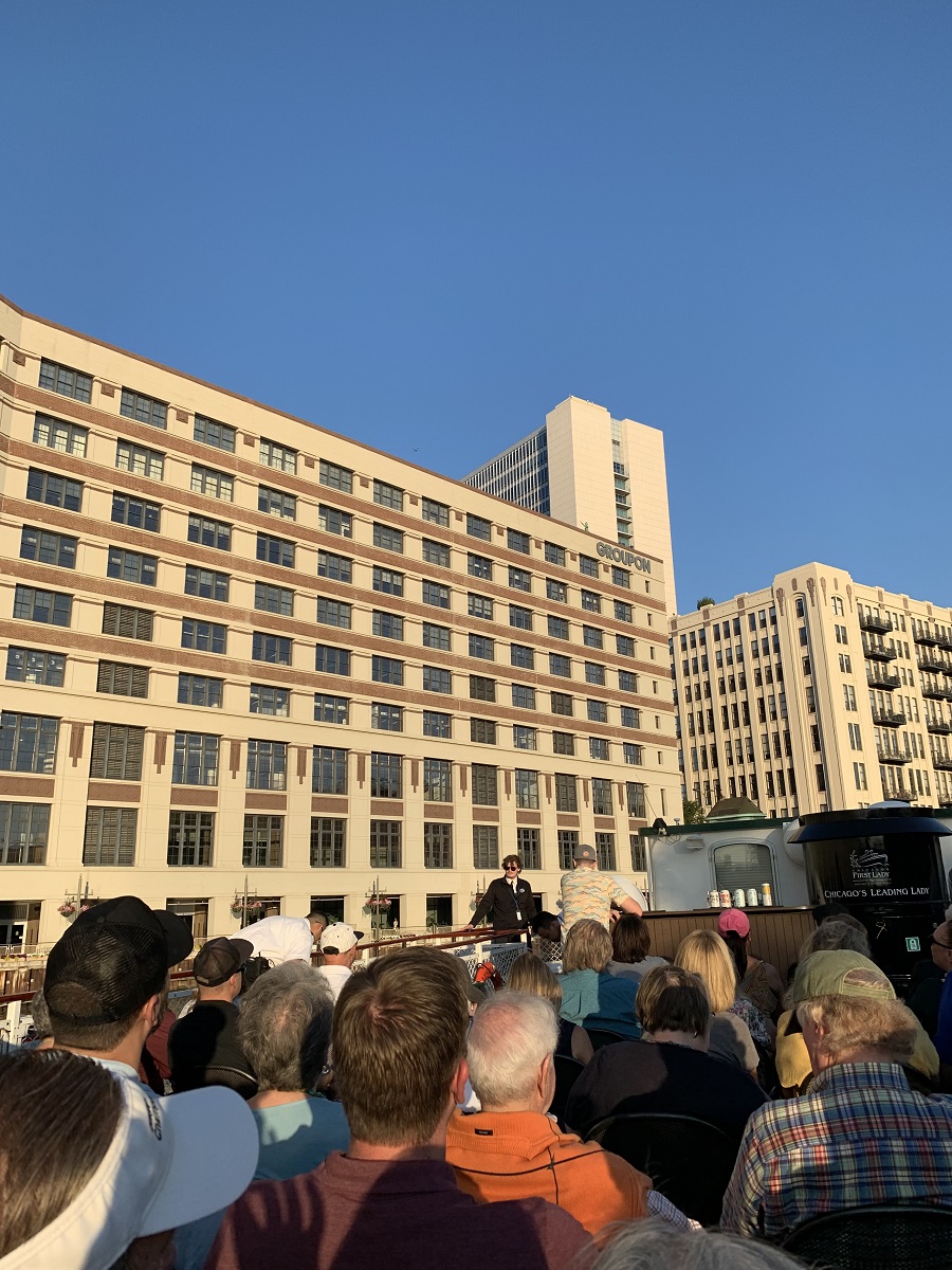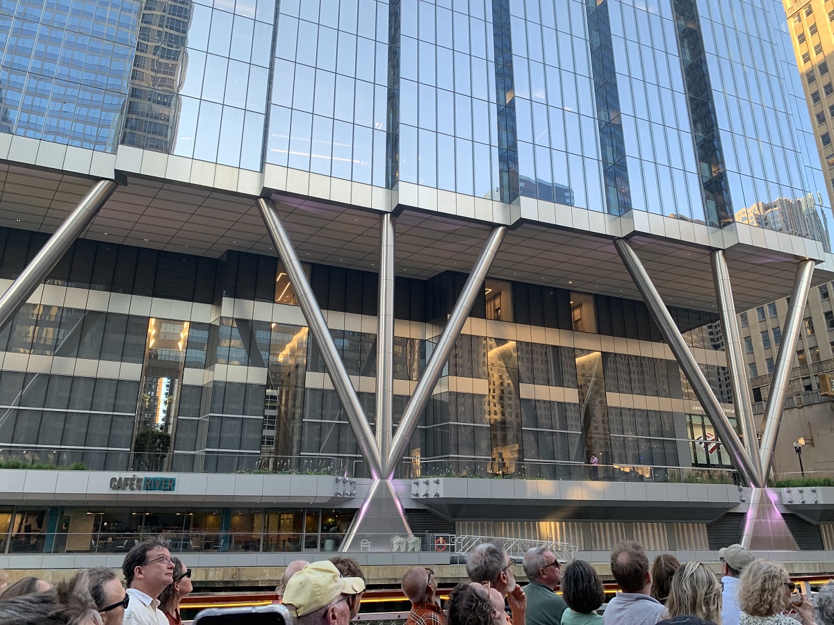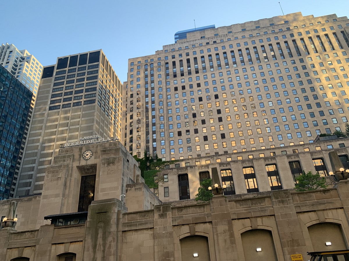 Riverside Plaza, just east of the new Metra station for the north and west traiins