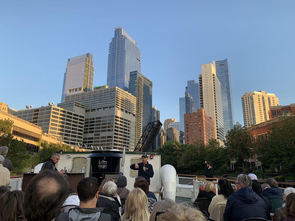 Many tall condos along Lake Michigan to east
