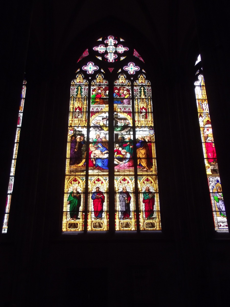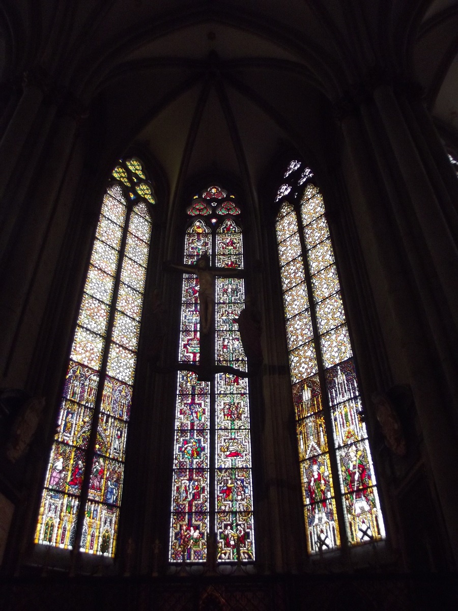 Many beautiful stained glass windows inside