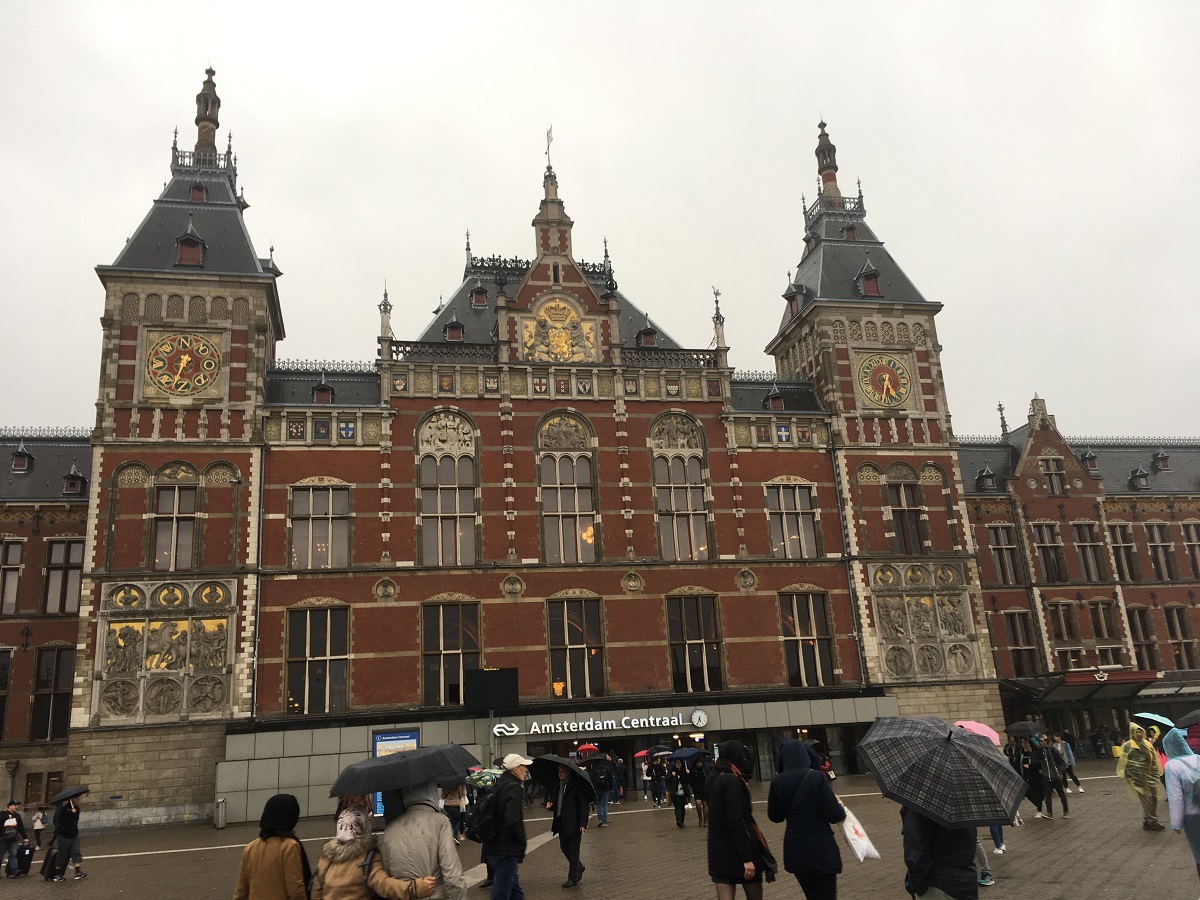 Old fashioned main entrance to the main train station at Amsterdam