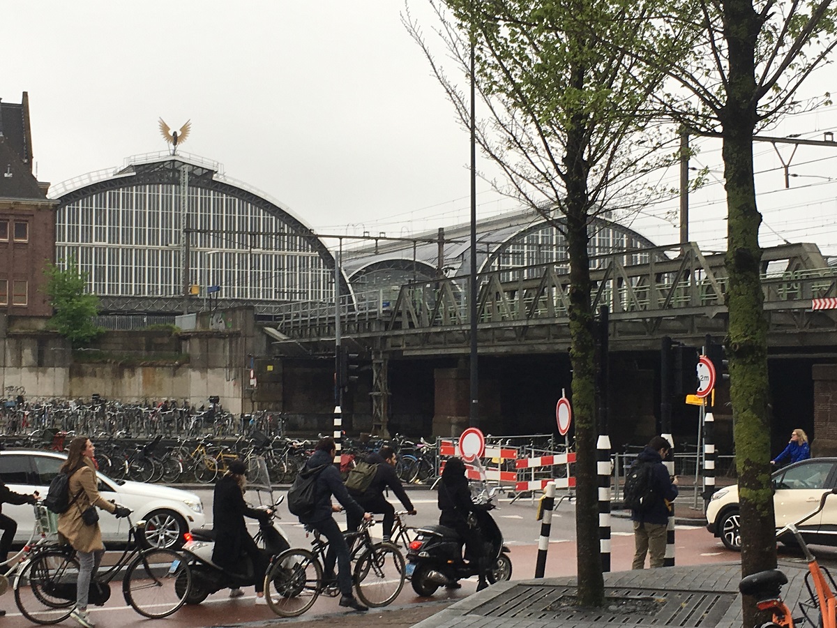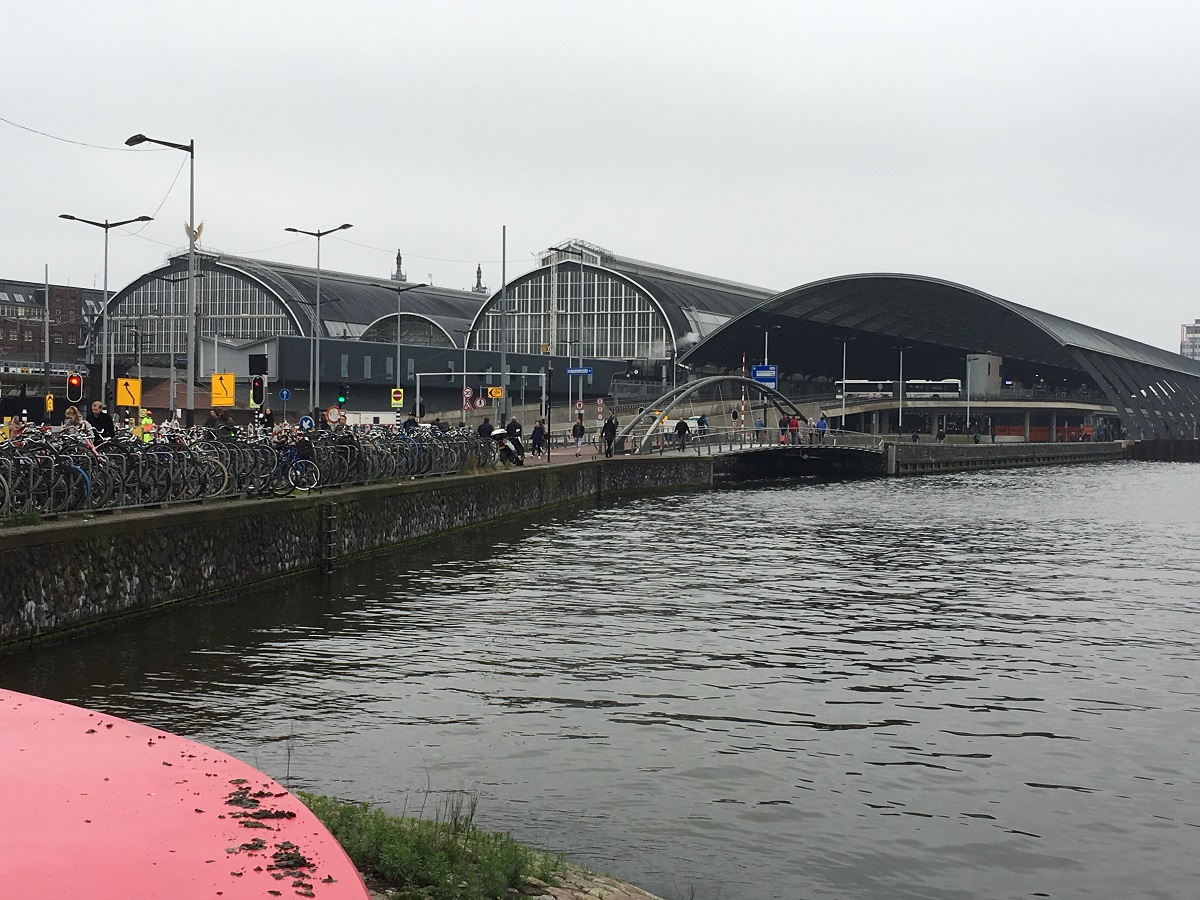 Bicycles with the new arched section of the main train station