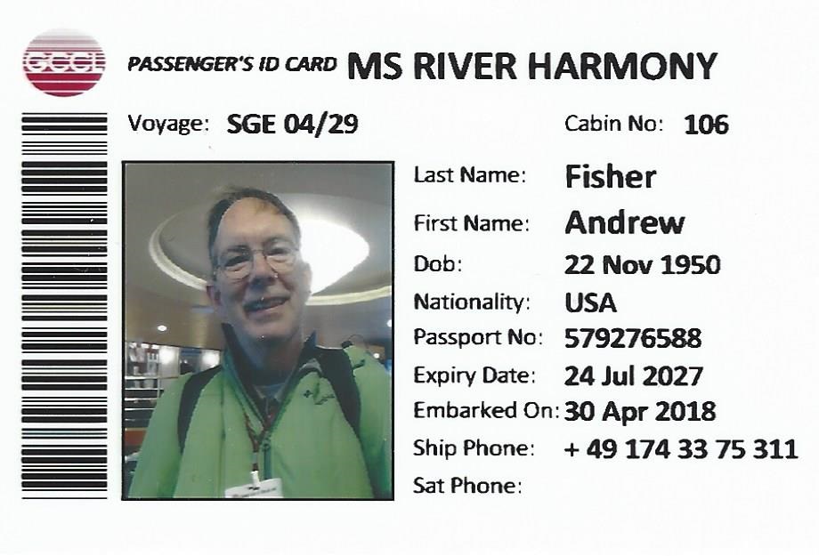 First the took a photo of us, then took our passport. With that they made an ID card like this for everyone. Every time we left the ship we took it with us, then returned it when we got aboard again.
