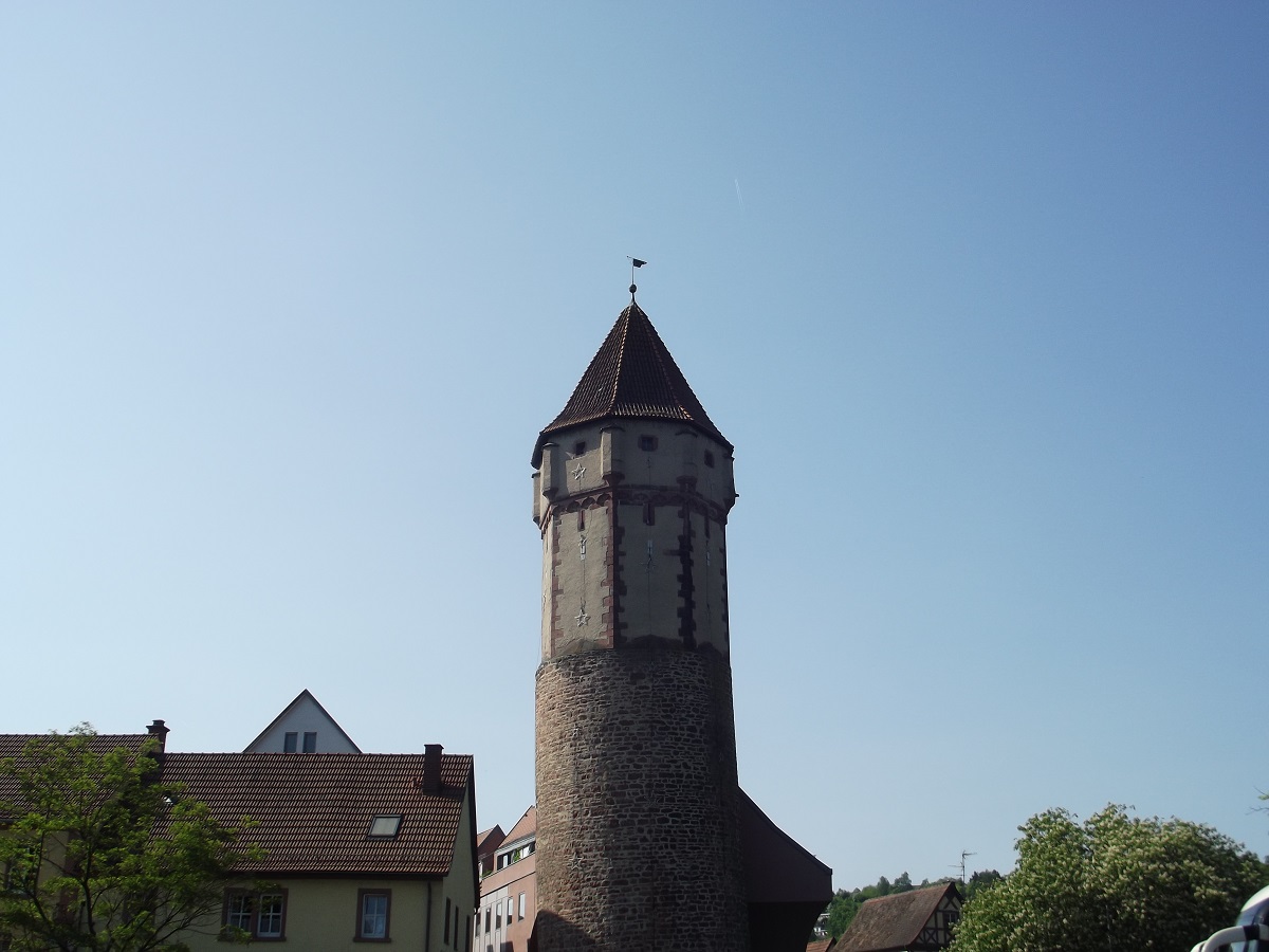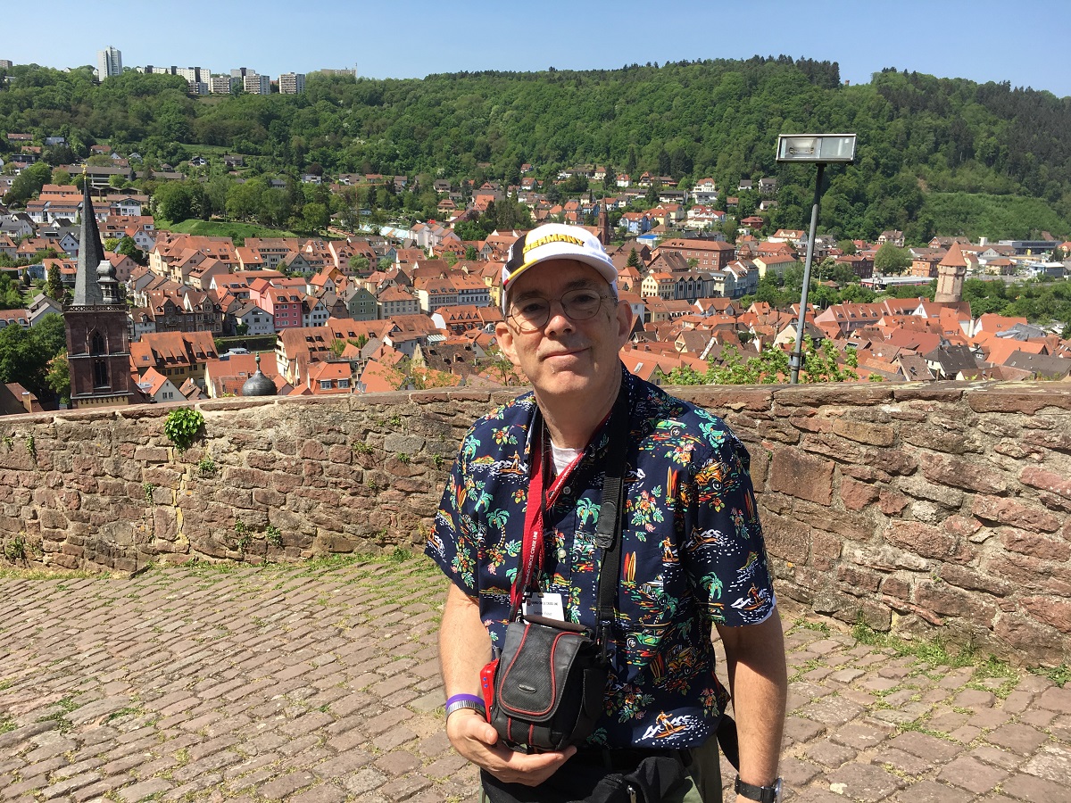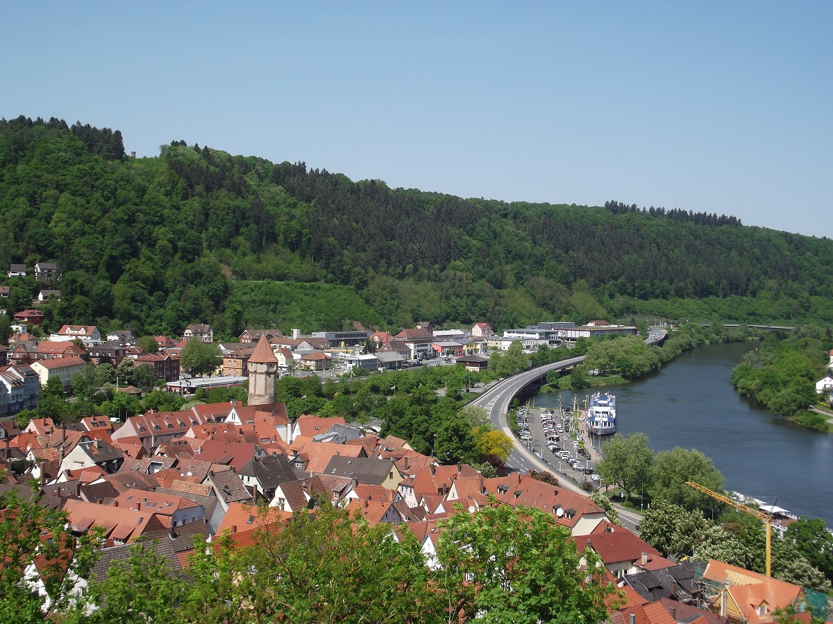 View from Castle Wertheim -- our ship -- white and blue "River Harmony" -- is moored on the river