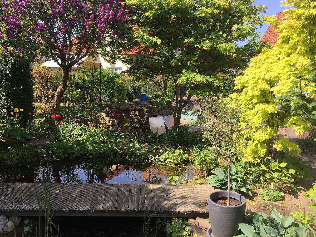 Another shot of their beautiful home garden with the pond