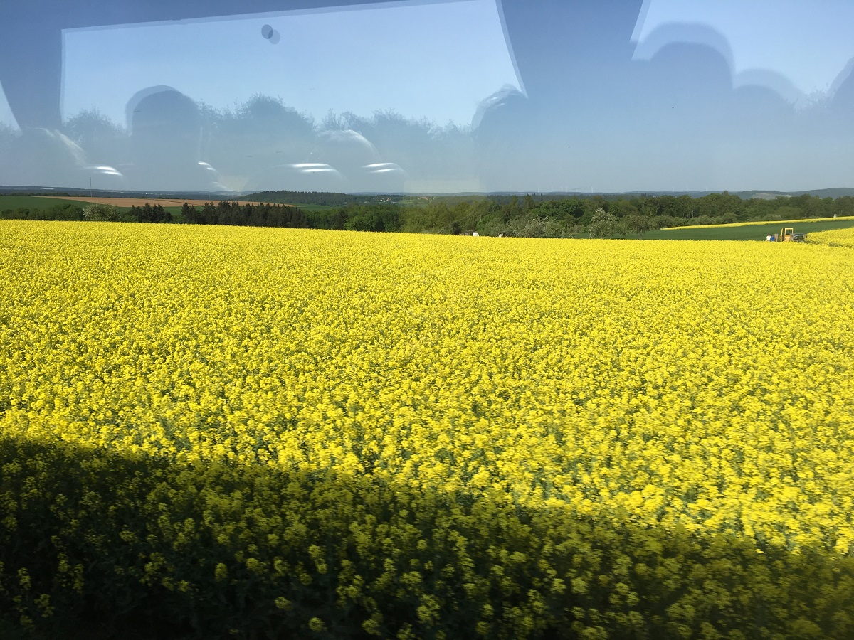 Driving home through field of yellow flowers
