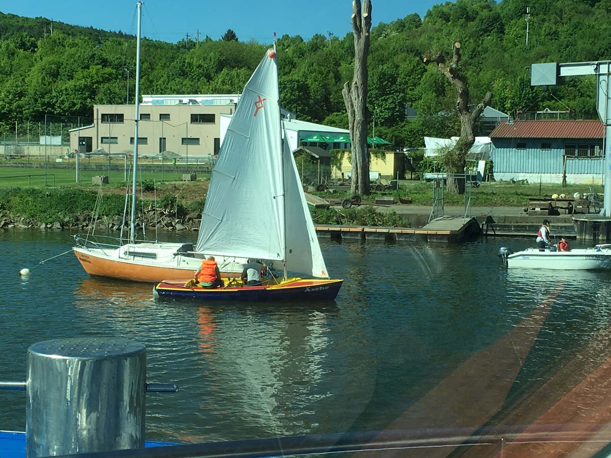 Sailboats on river approaching Wurzburg