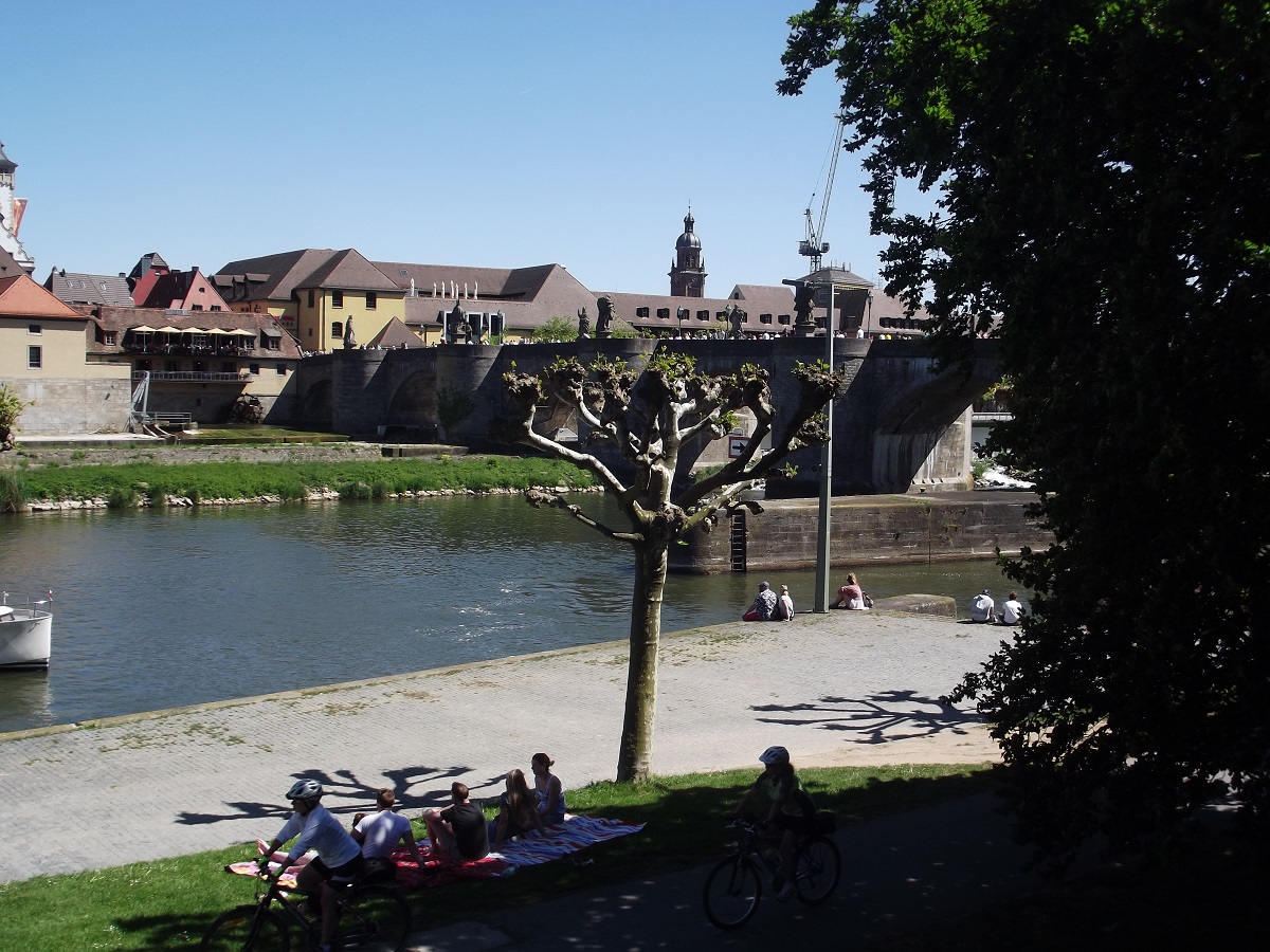 Sycamore trees and old main bridge at Wurzburg