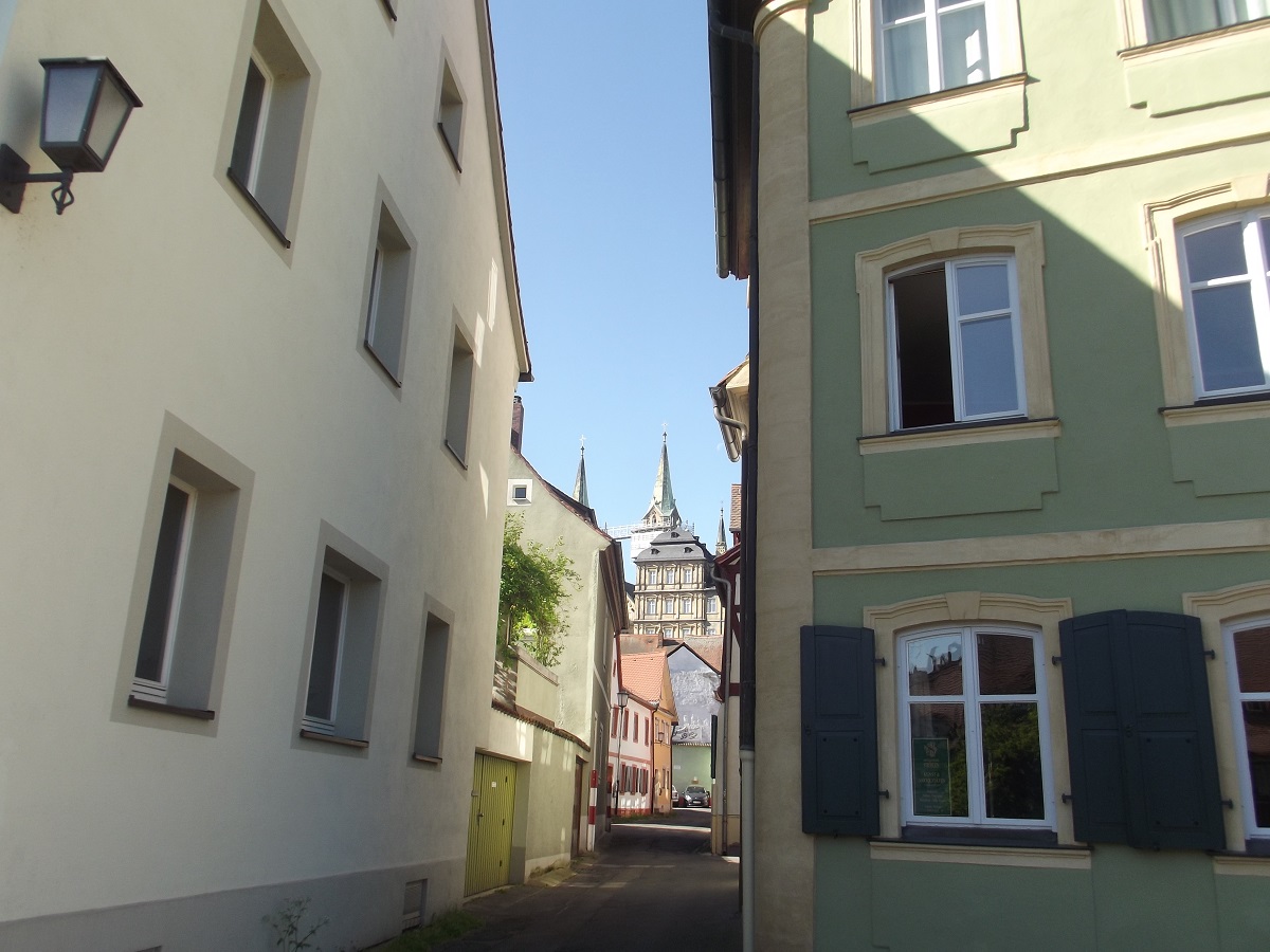Narrow street with steeples