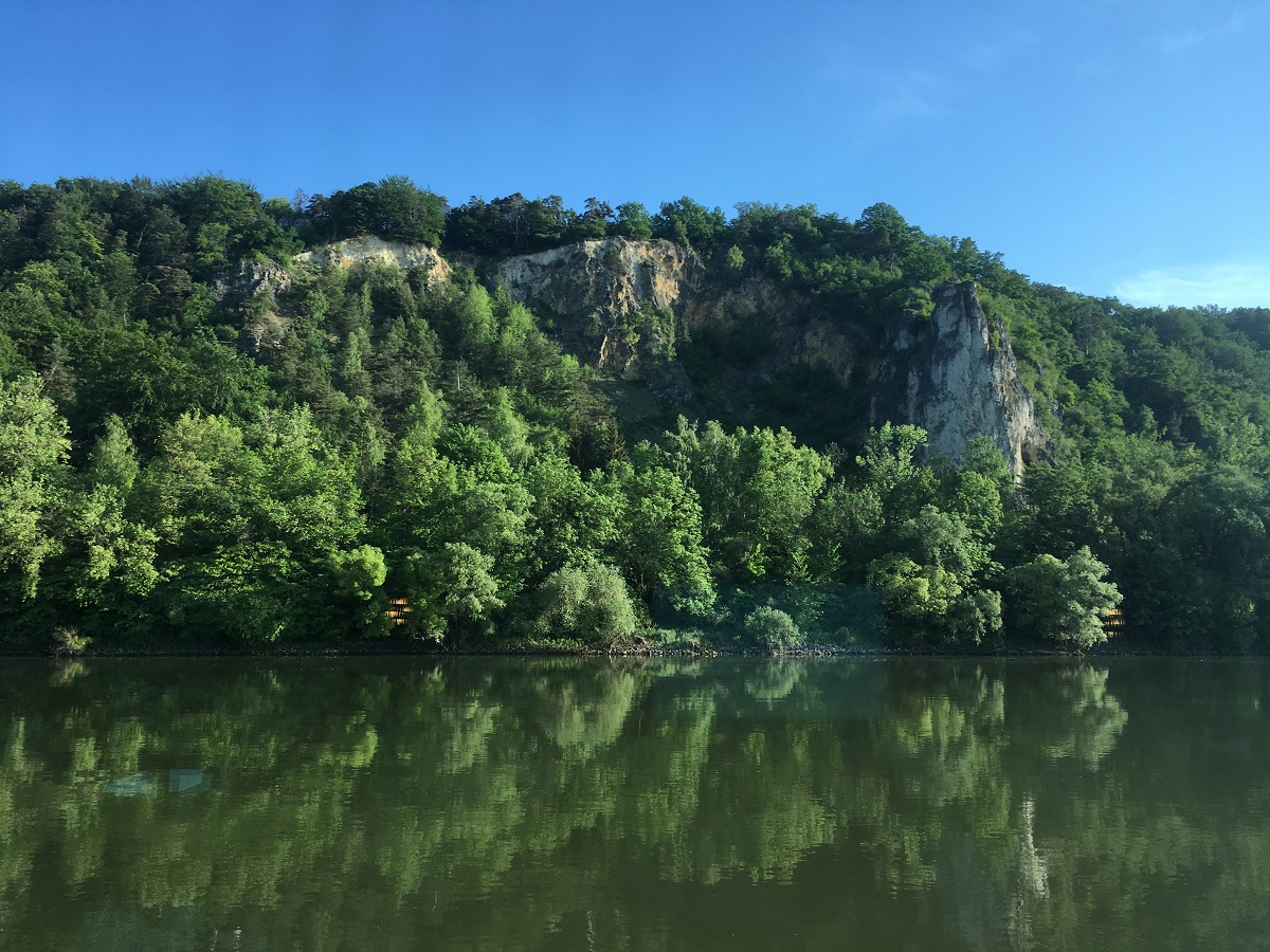 Attractive trees and bluffs approaching Regensburg -- May 10