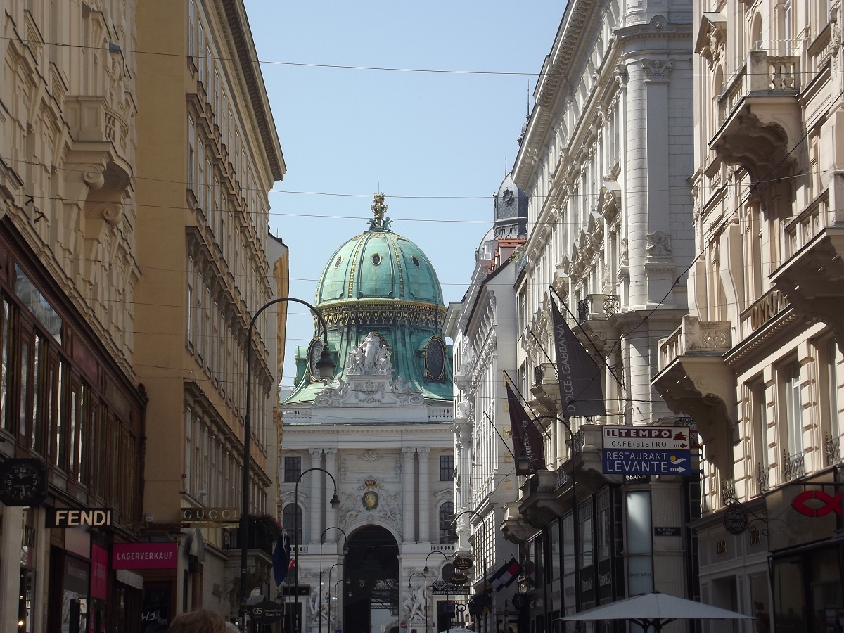Street leading to green dome