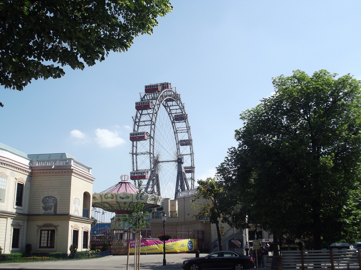 Oldest ferris wheel in Europe -- note every other "chair" is missing due to its great damage in WW II they only rebuilt every other one