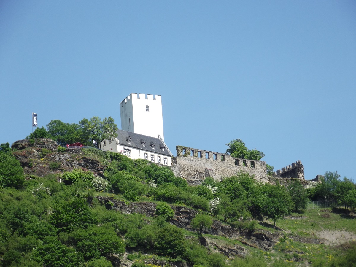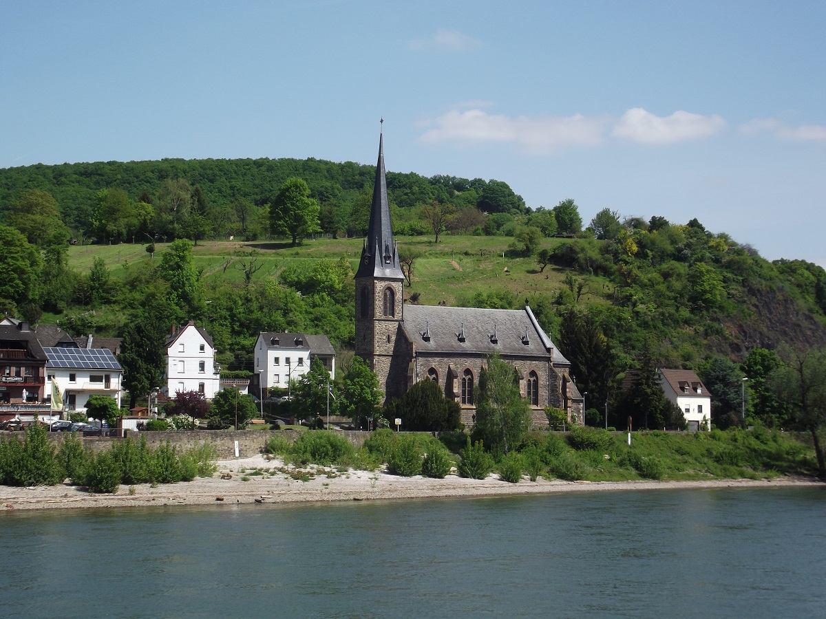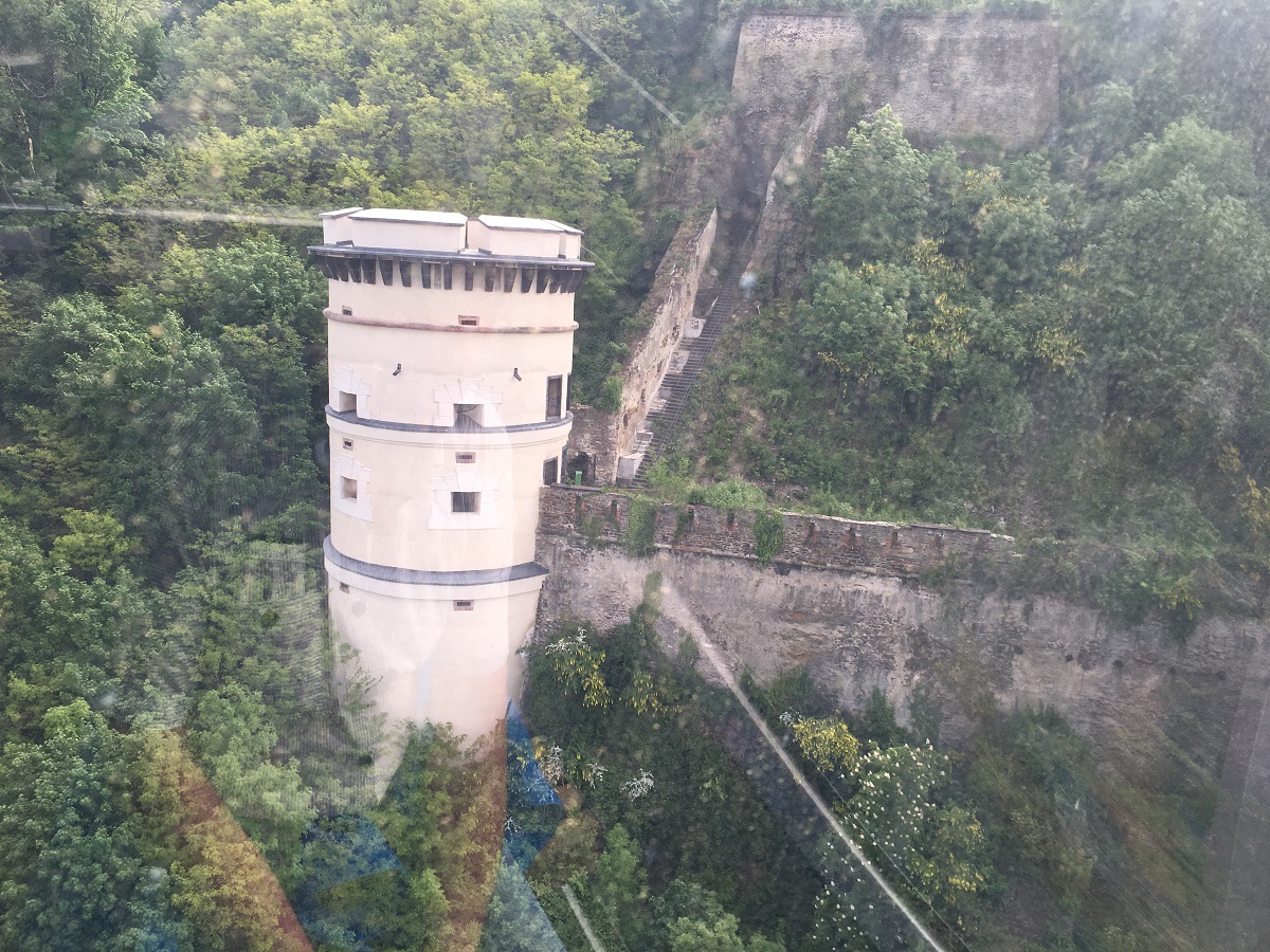 Gondola showing both the Moselle and the Rhine rivers -- our ship, River Harmony, is to the left of the gondola cables