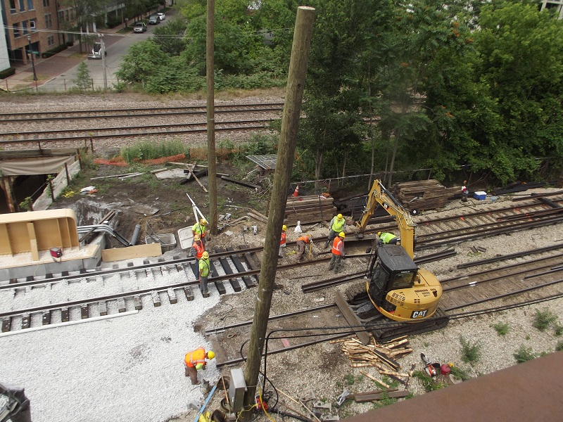 Workers rebuilding and extending Dempster station platform