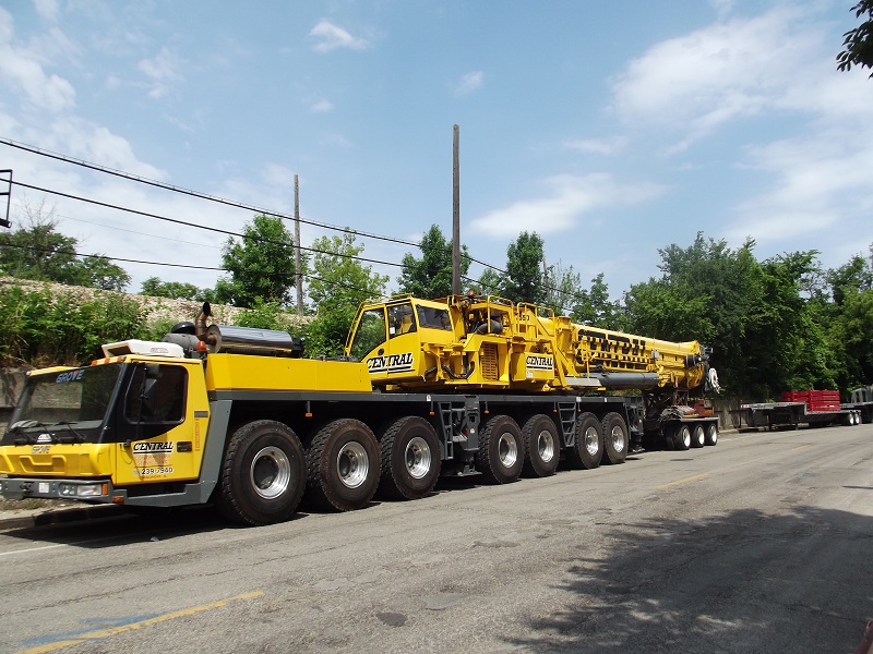 Six million dollar heavy duty crane parked on Sherman with several flat trailors behind it for super heavy counterweights
