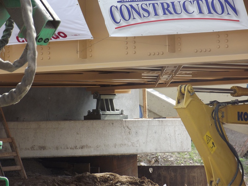 Two Goldhaufer jacks, Grove street bridge, and ballast gravel conveyor