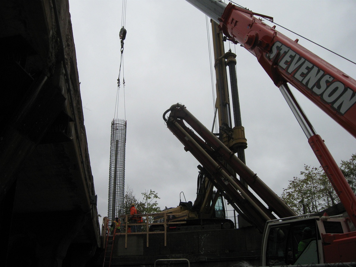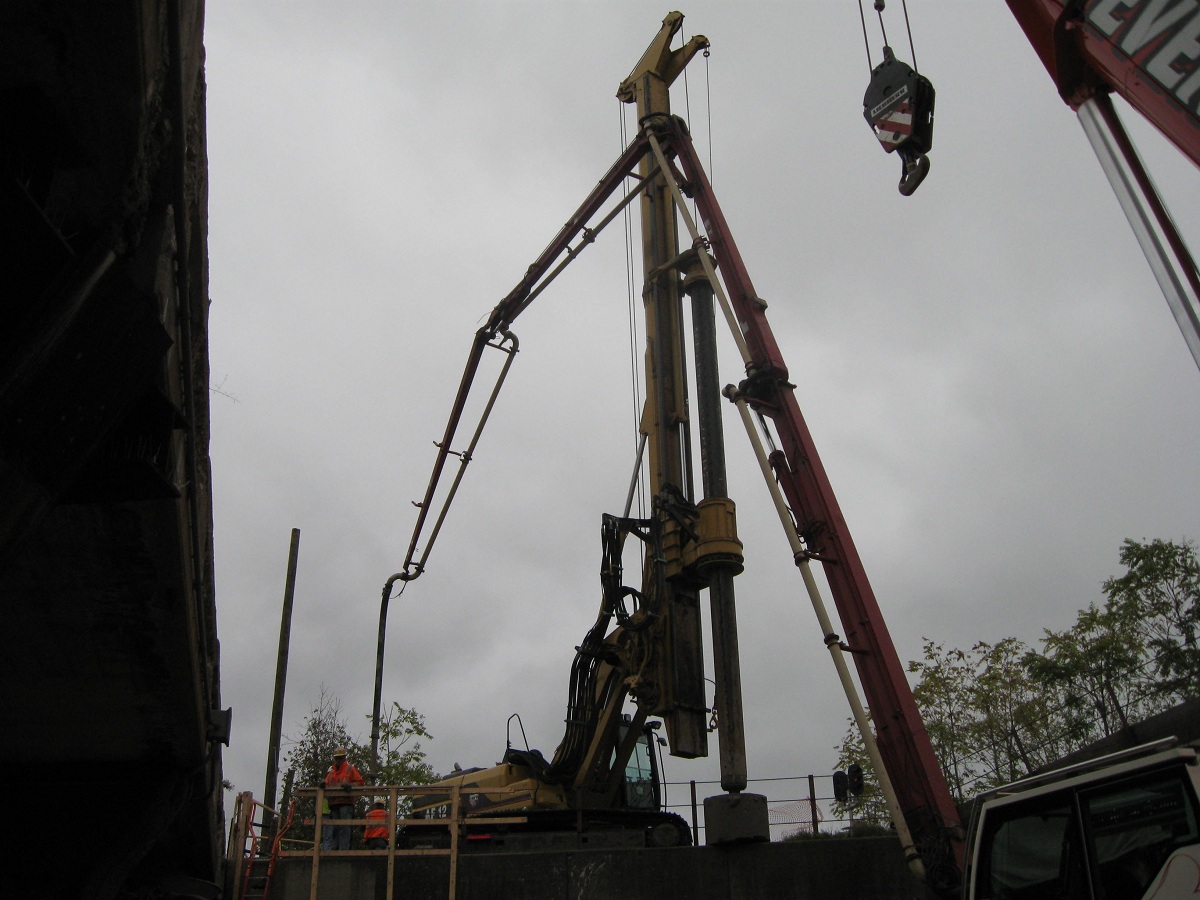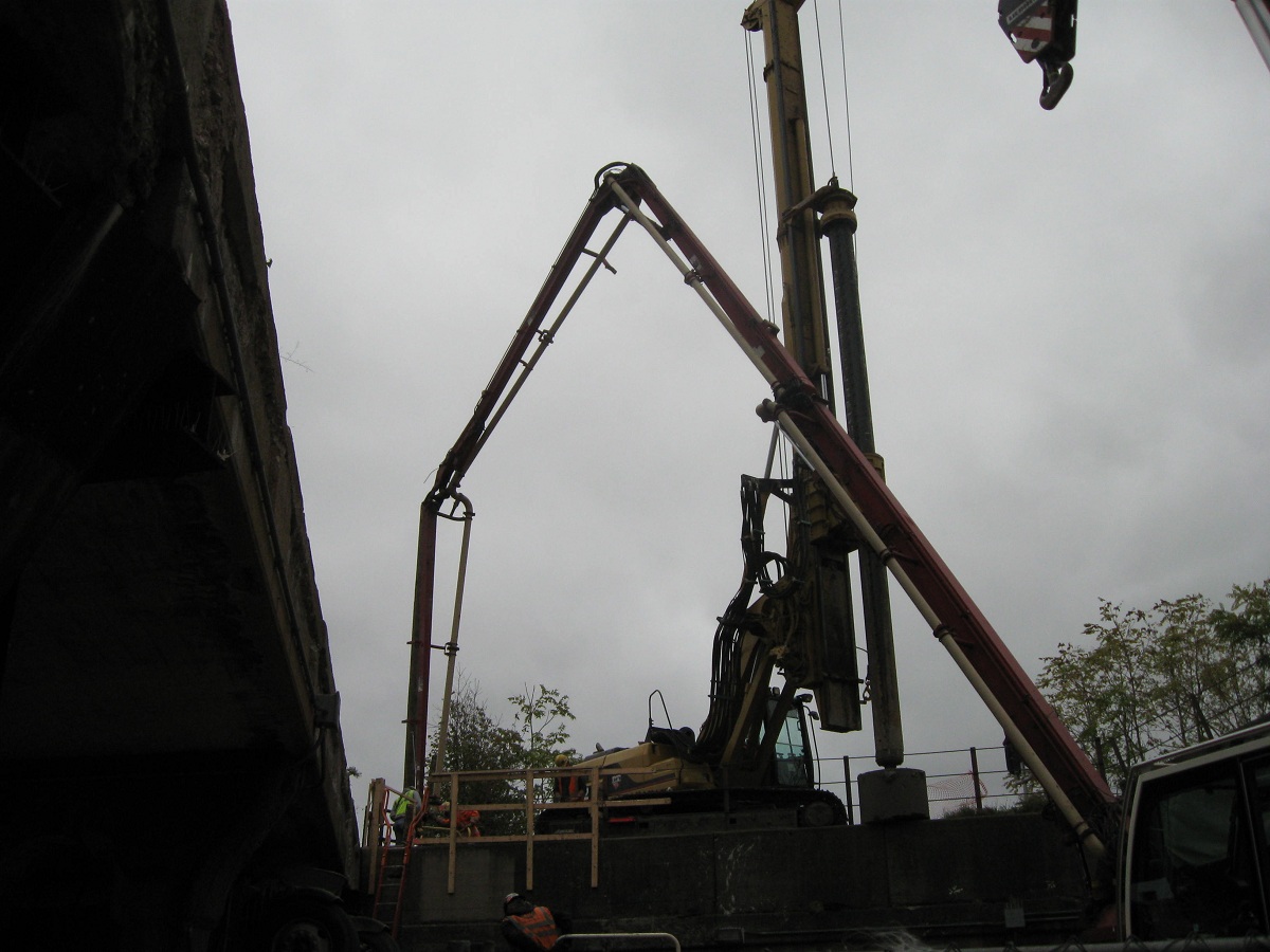 Now the actual concrete is pumped deep into the caison.