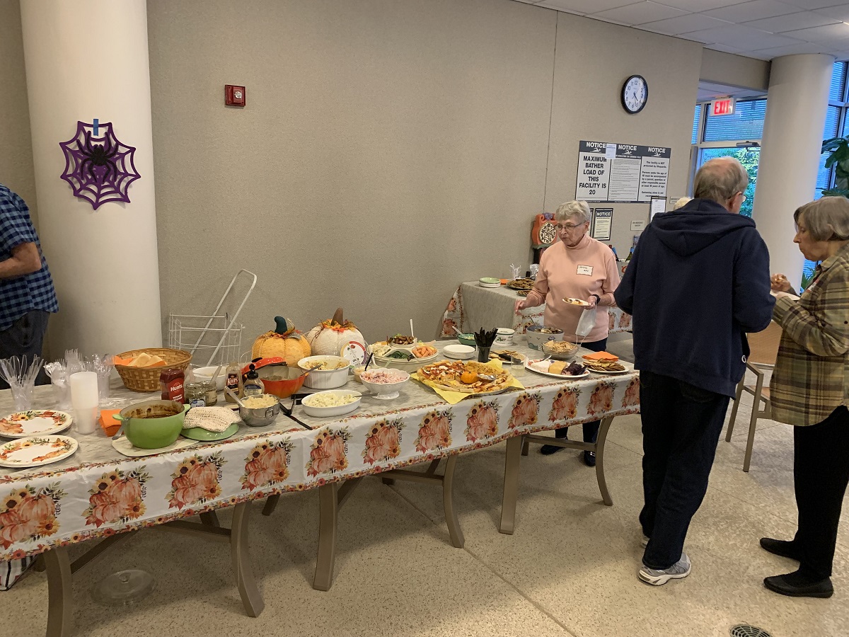 Refreshments below spider web at Optima Towers Halloween Octoberfest