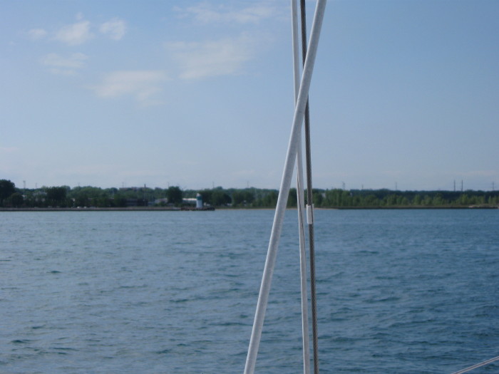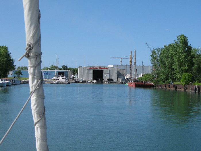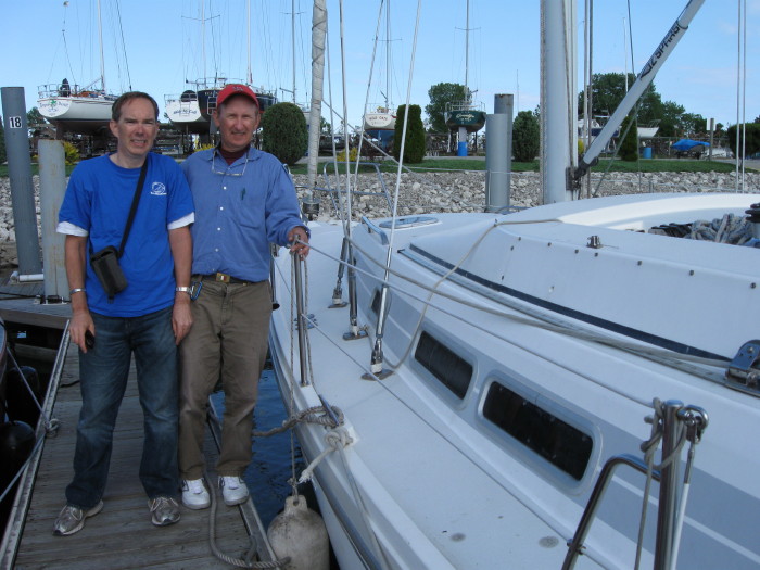 Andy and Bill with ESCAPADE after she is safely moored at Larsons in Waukegan