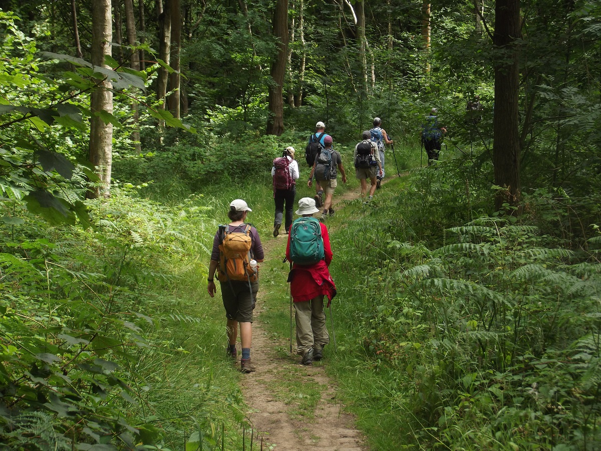 Jo Sherry and others treking through forest