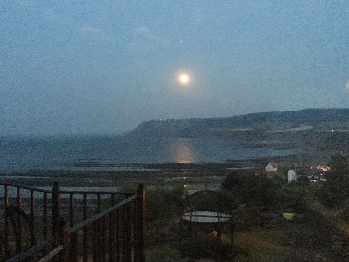 (Almost) full moon rising further and brighter over cliff