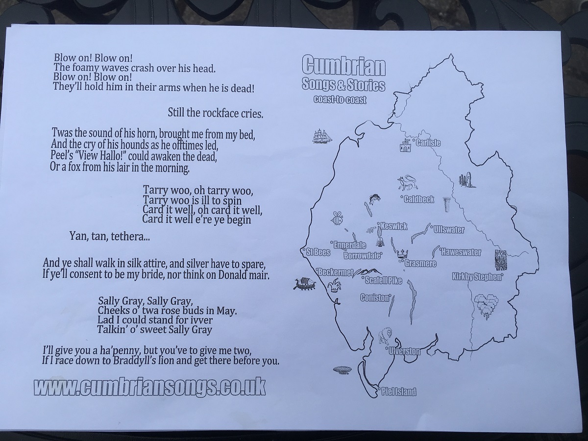 Words and map of Cumbrian songs and stories -- July 18