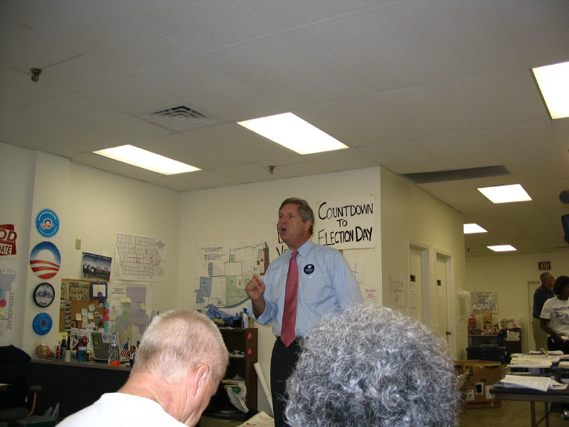 Former Iowa Governor [name?] giving us his pep speech in Davenport office