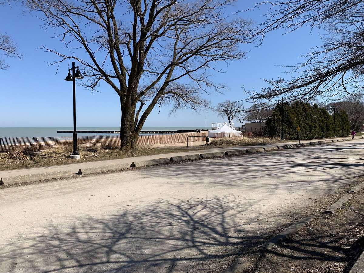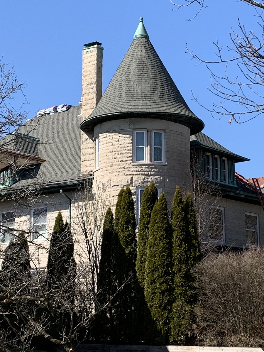House with round tower west of Lee Street Beach