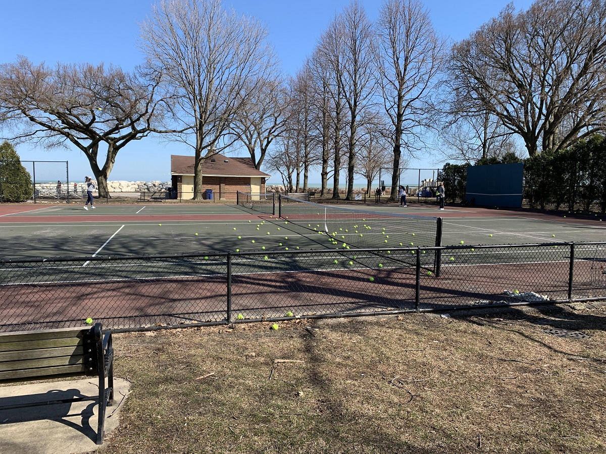 Tennis courts with MANY yellow/greem balls