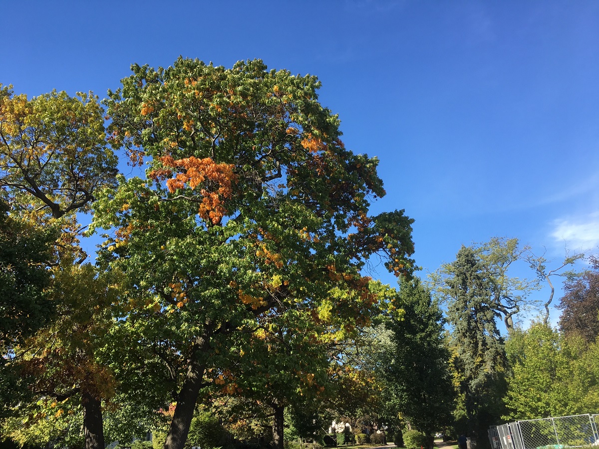 Tree with gold brown patches on Edgemere Court