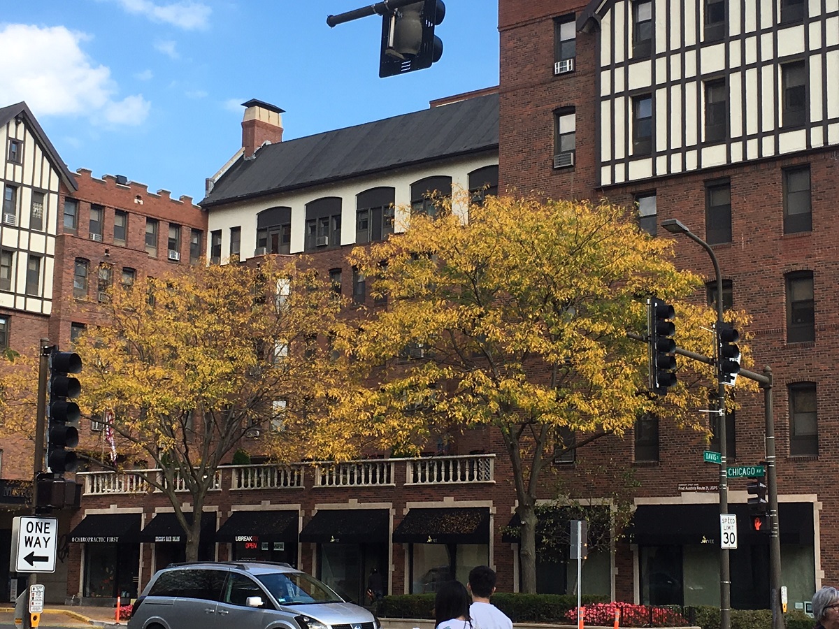 Yellow locust trees by senior center on Chicago Ave. by Davis St.