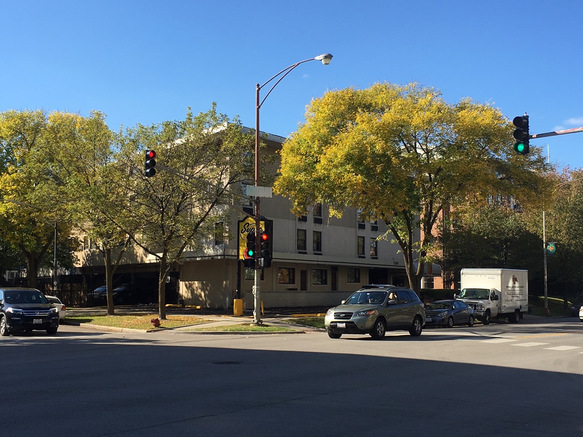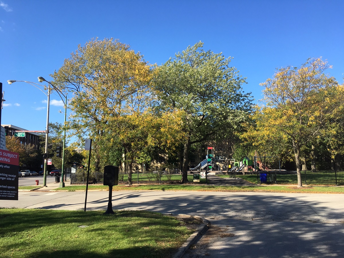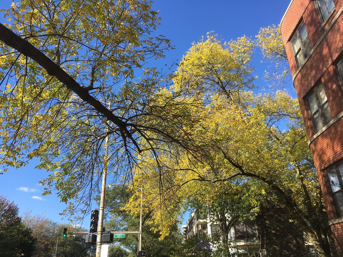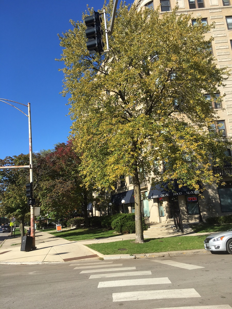 Yellow trees on northwest corner of Chase and Sheridan