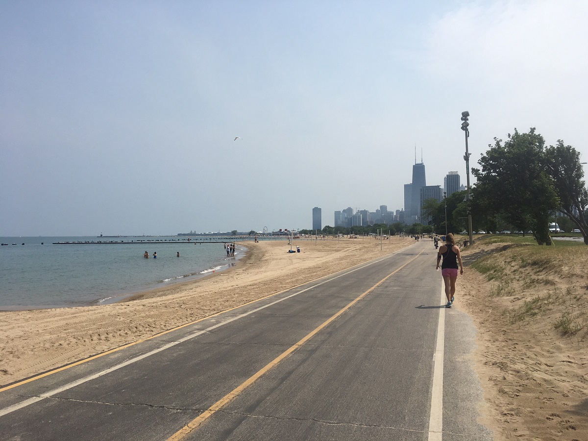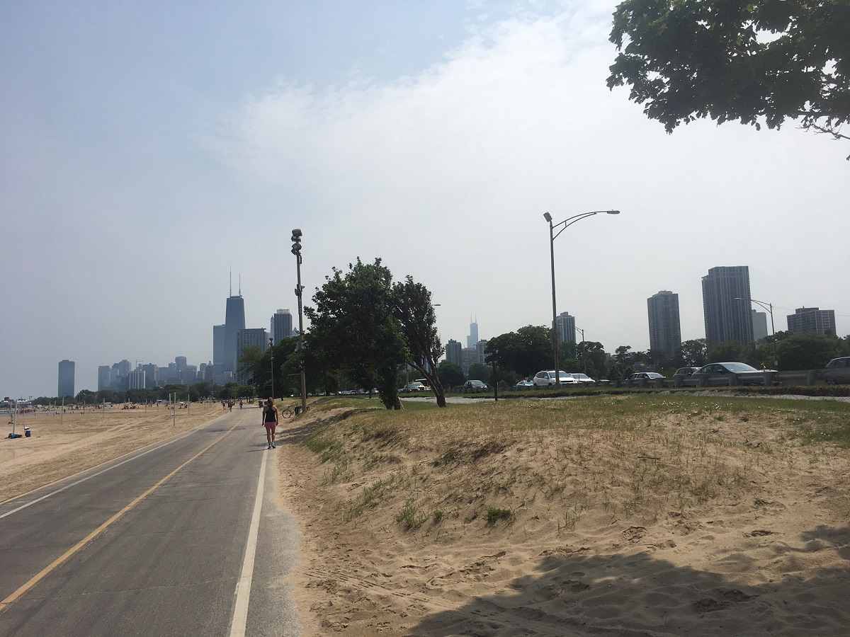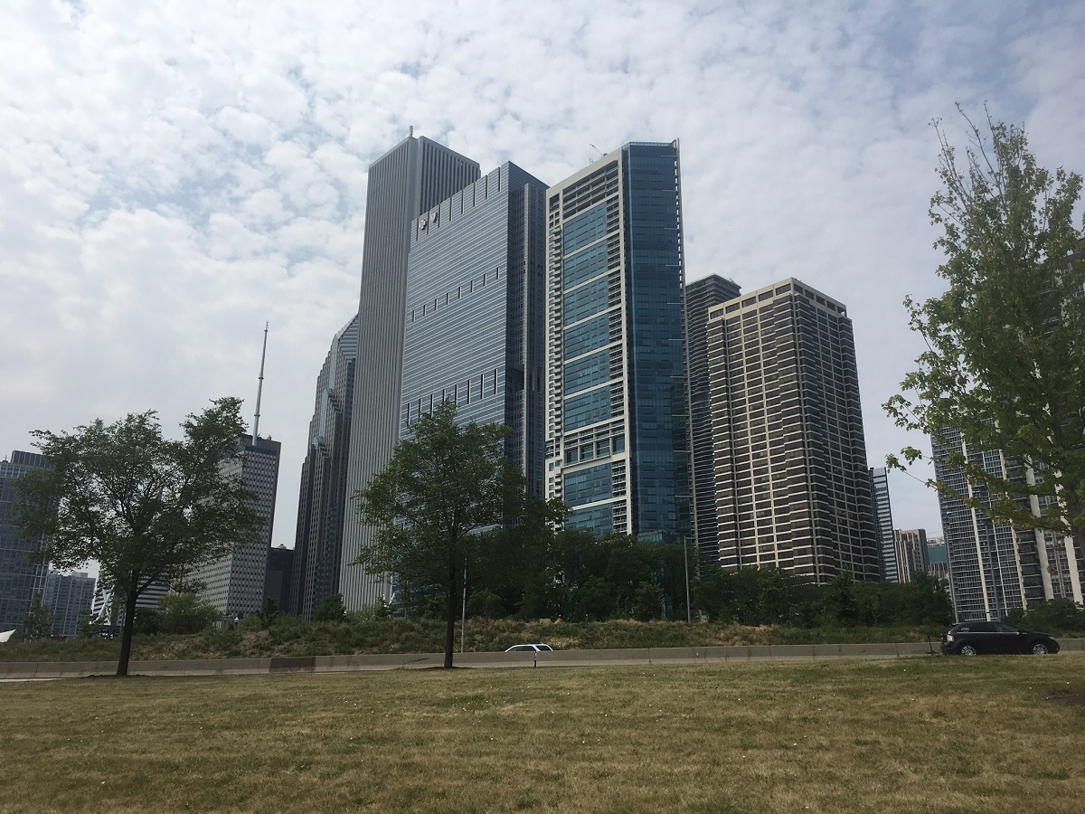 Lake Point Tower and Hancock from the Chicago lakeshore bike path