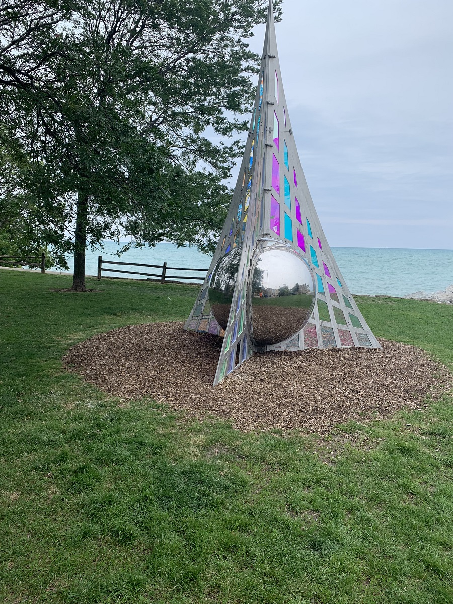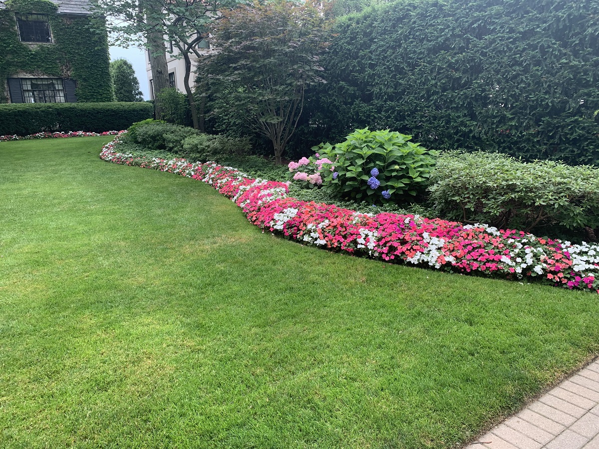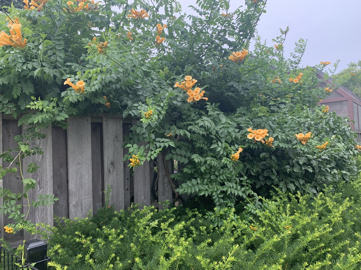 Yellow lillies, purple cone flowers, and blue ones on Edgemere Court