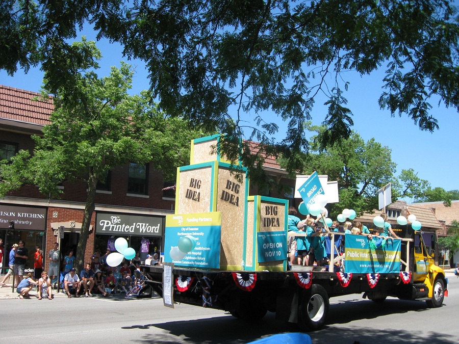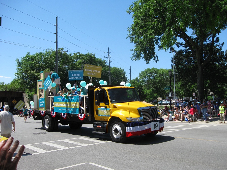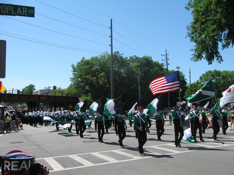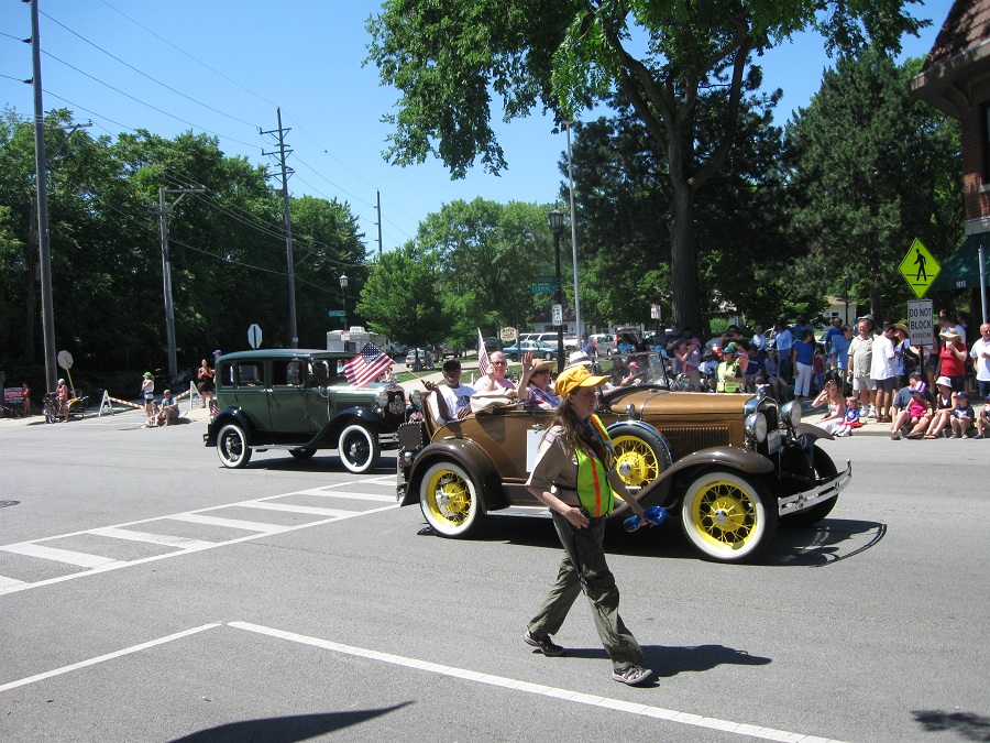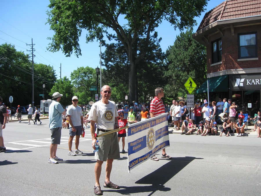 Harry Vroegh carrying bannor for Evanston's Rotary Clubs
