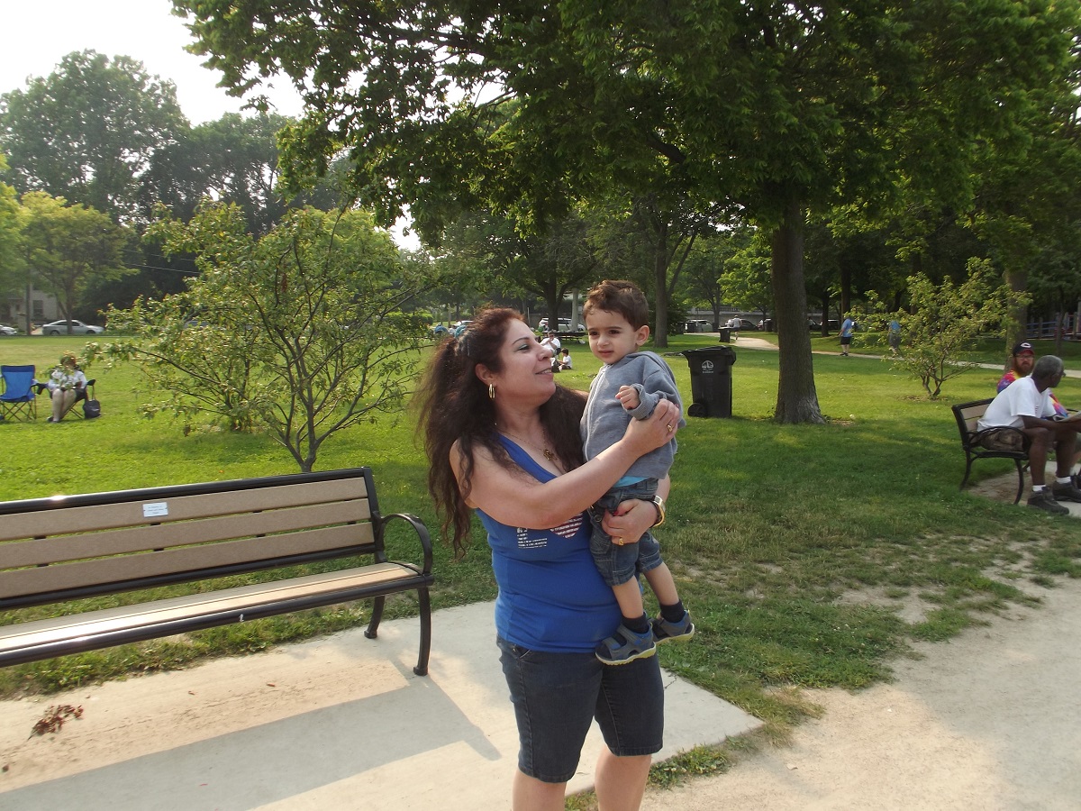 Mother, son and others on or near footpath south of Dempster