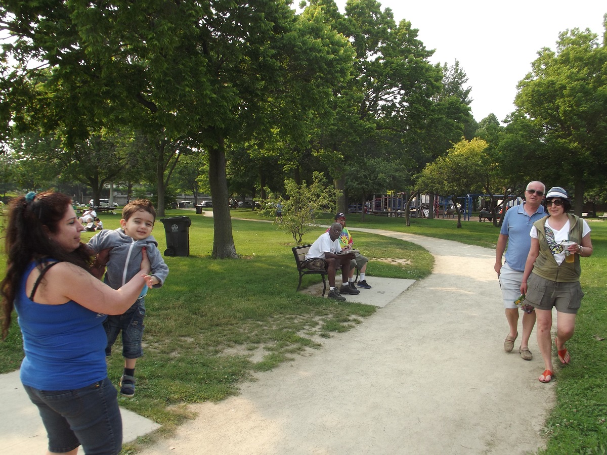 Many pedestrains enjoying footpath south of Dempster