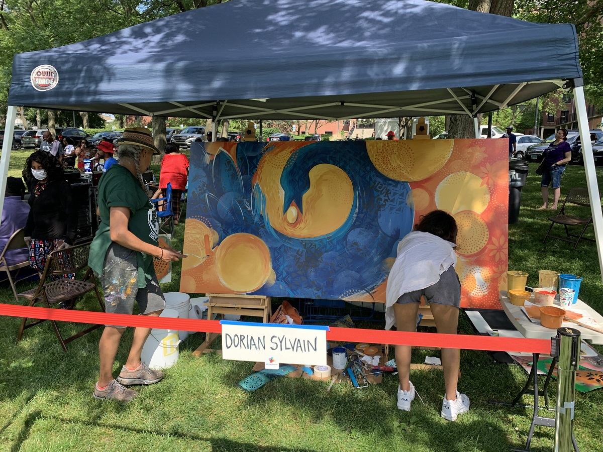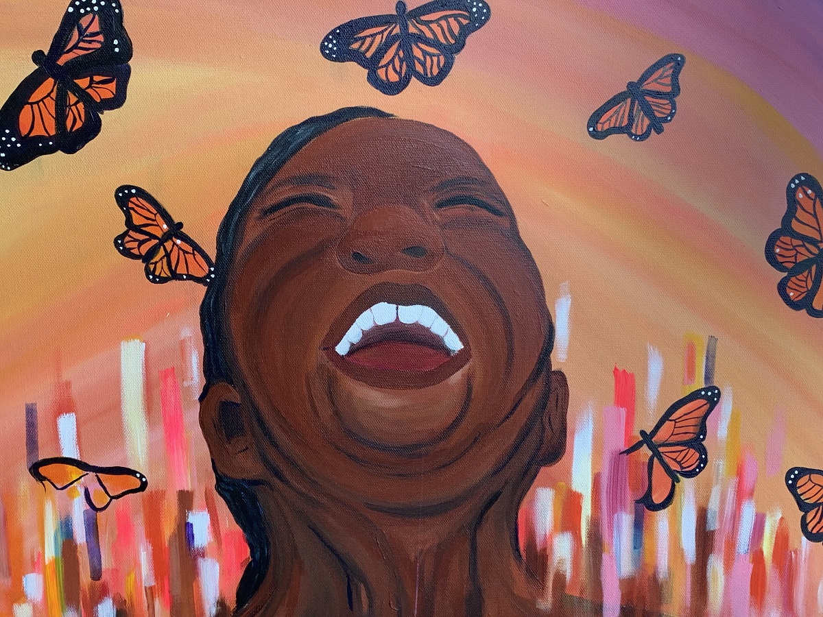 Butterflies with black singing to sky painging that I bought there (24" by 24")