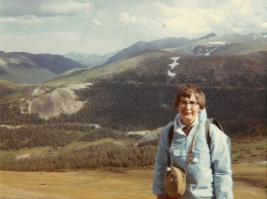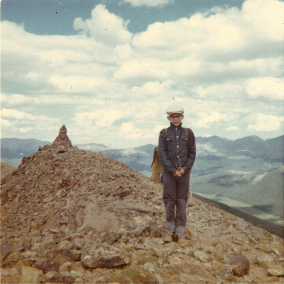 Marjorie and Andy climbing Speciman Mt., Andy at top