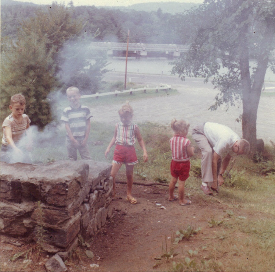 Jim, Andy, Carol, Dorothy, Dad near Dartmouth, NH -- summer, 1959