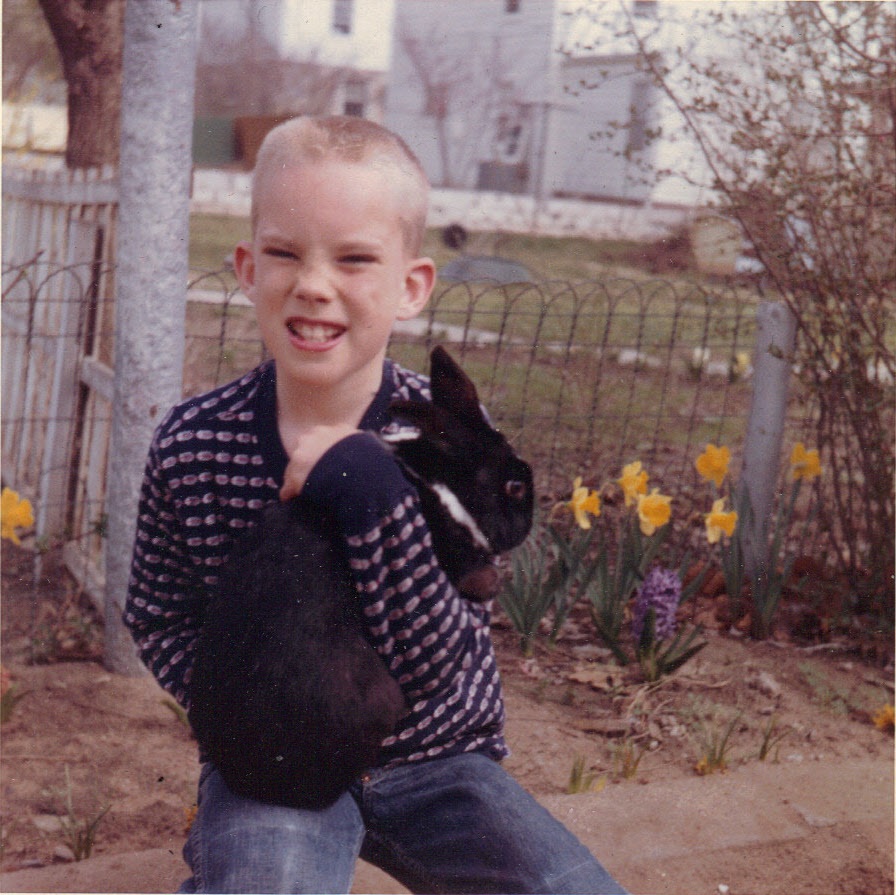 Andy with Sniffy -- his pet rabbit -- spring, 1960