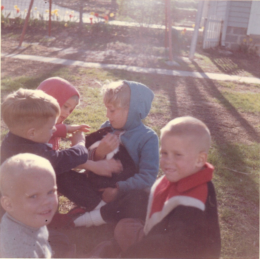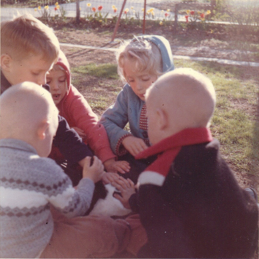 Friends, Dorothy, Carol, Andy with Sniffy -- spring, 1960