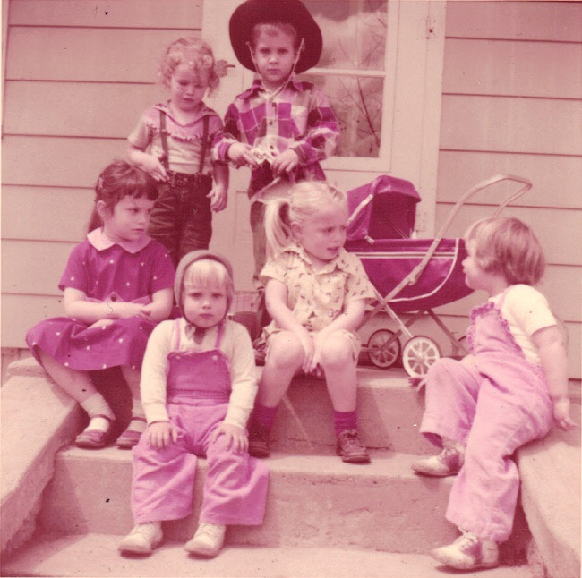 Dorothy, Andy, Carol at 949 Fisher Lane, Winnetka, IL -- 1957