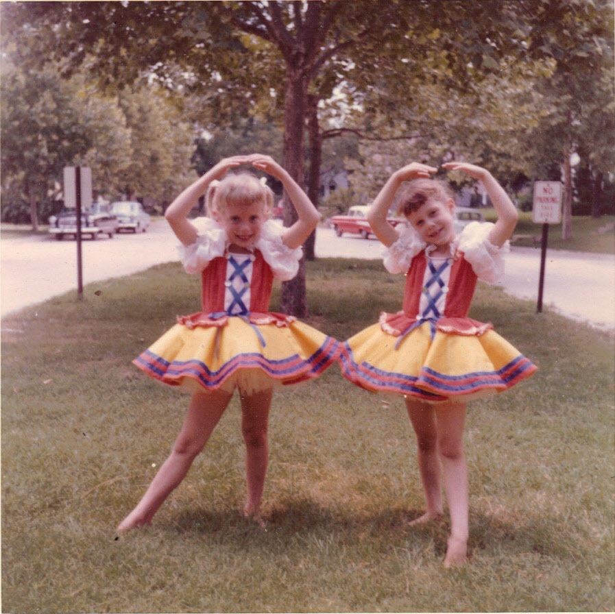 Carol with Roxanne Lippert in ballet costumes -- late spring, 1959