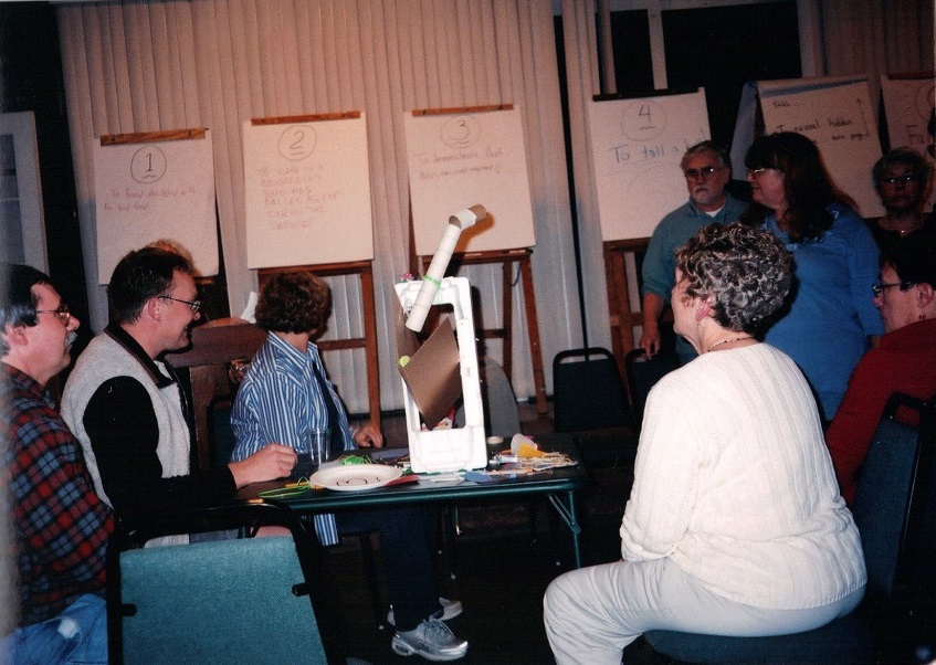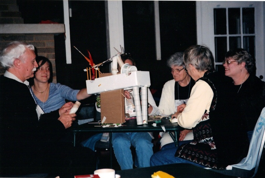 John LaPlante, Inge Kistler working with others on creative sculpture