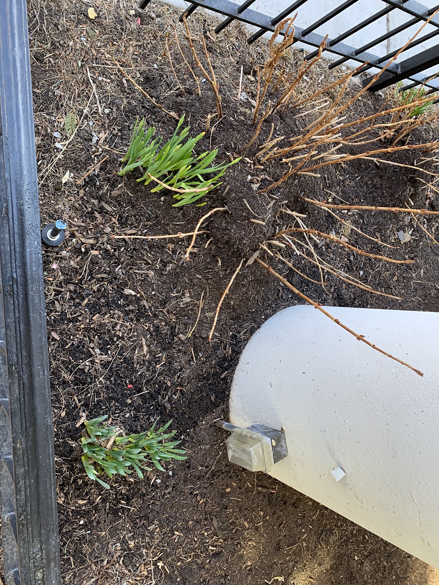 Our daffodils in Optima Towers courtyard are UP further, but not in bloom yet