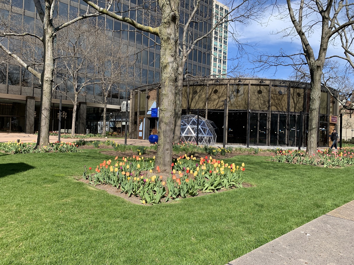 MANY tulips in bloom in Chase plaza