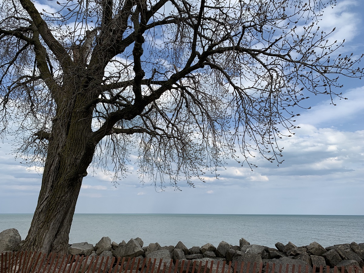 Large buds about to come out on huge cottonwood tree in Elliott Park south of Dempster St.